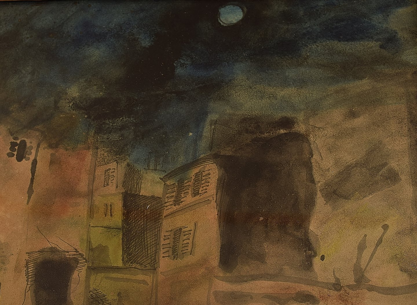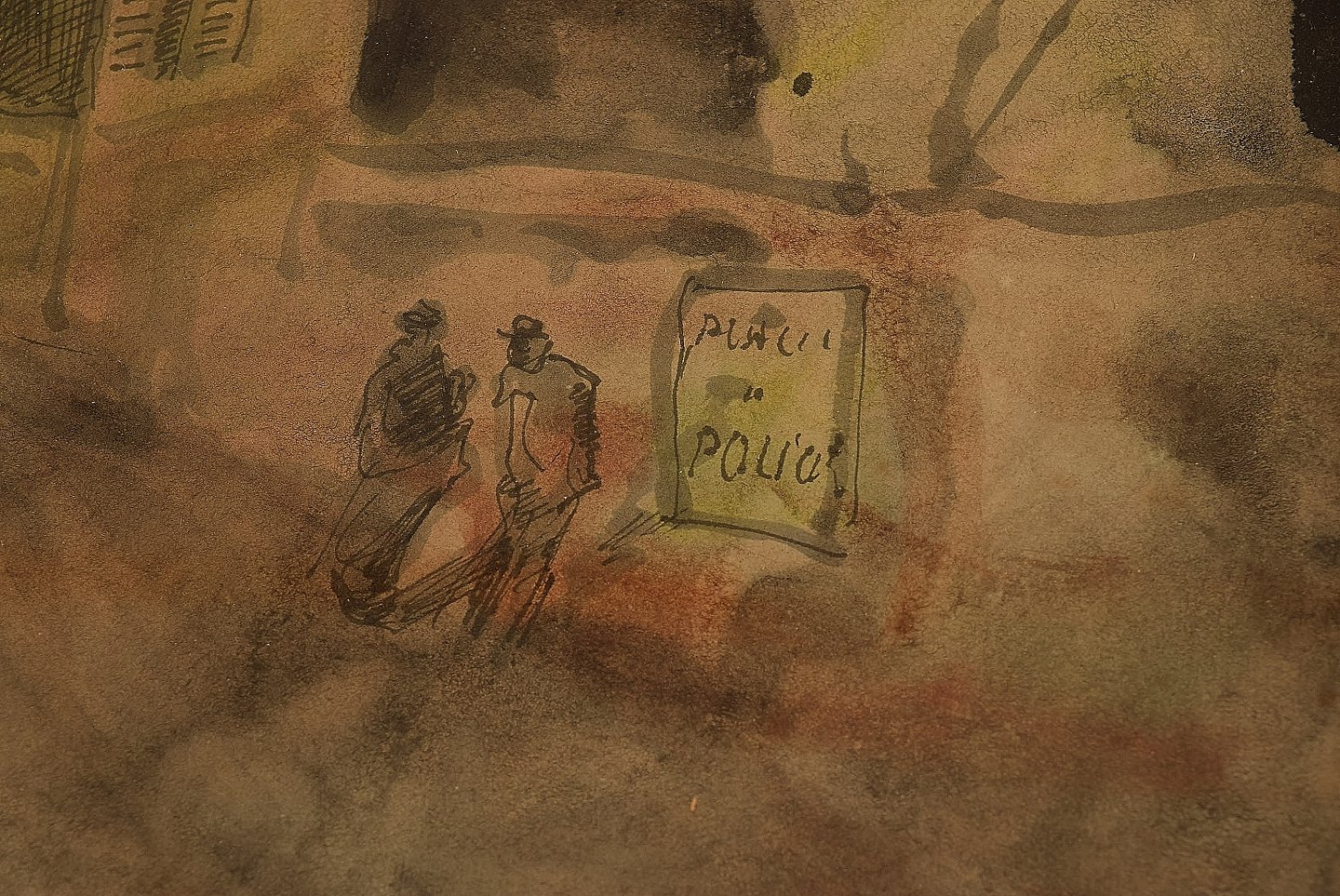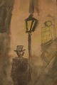 Mogens Vantore: Sceneri fra Paris. Usigneret. Oliekridt, bly og vandfarve på papir. Måler : 38,5 x 31 cm. I god stand.