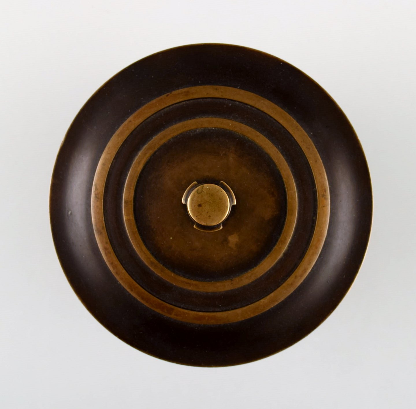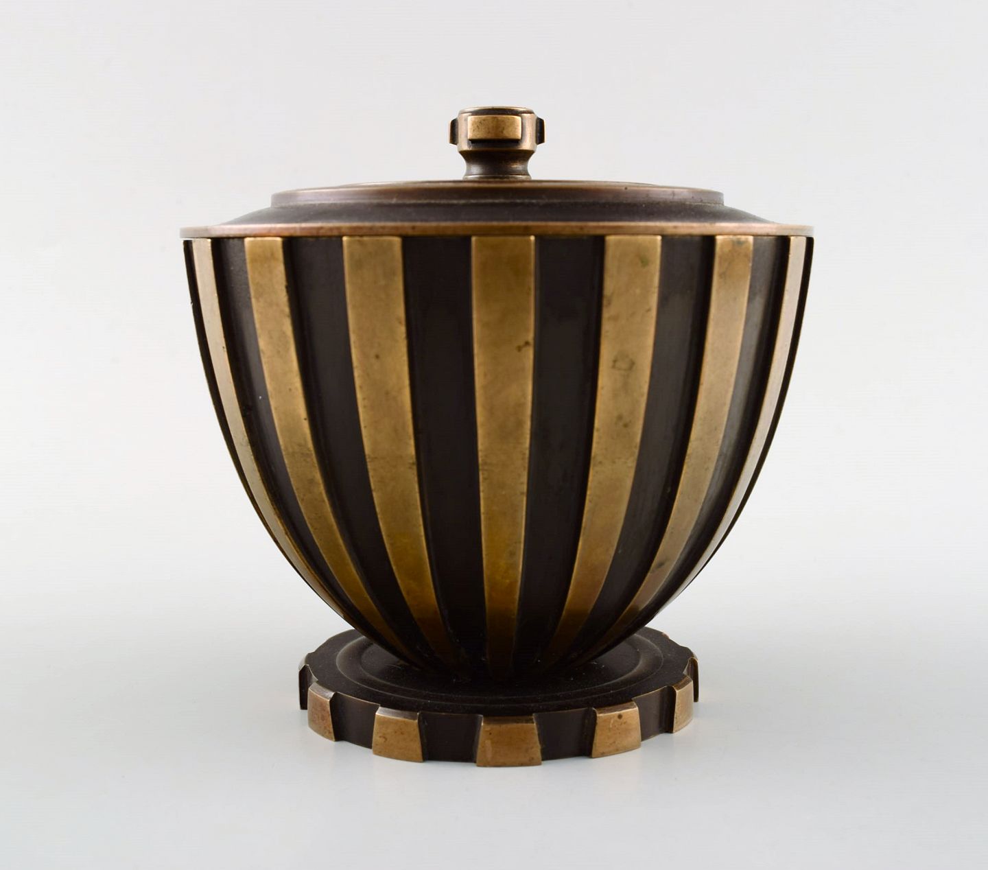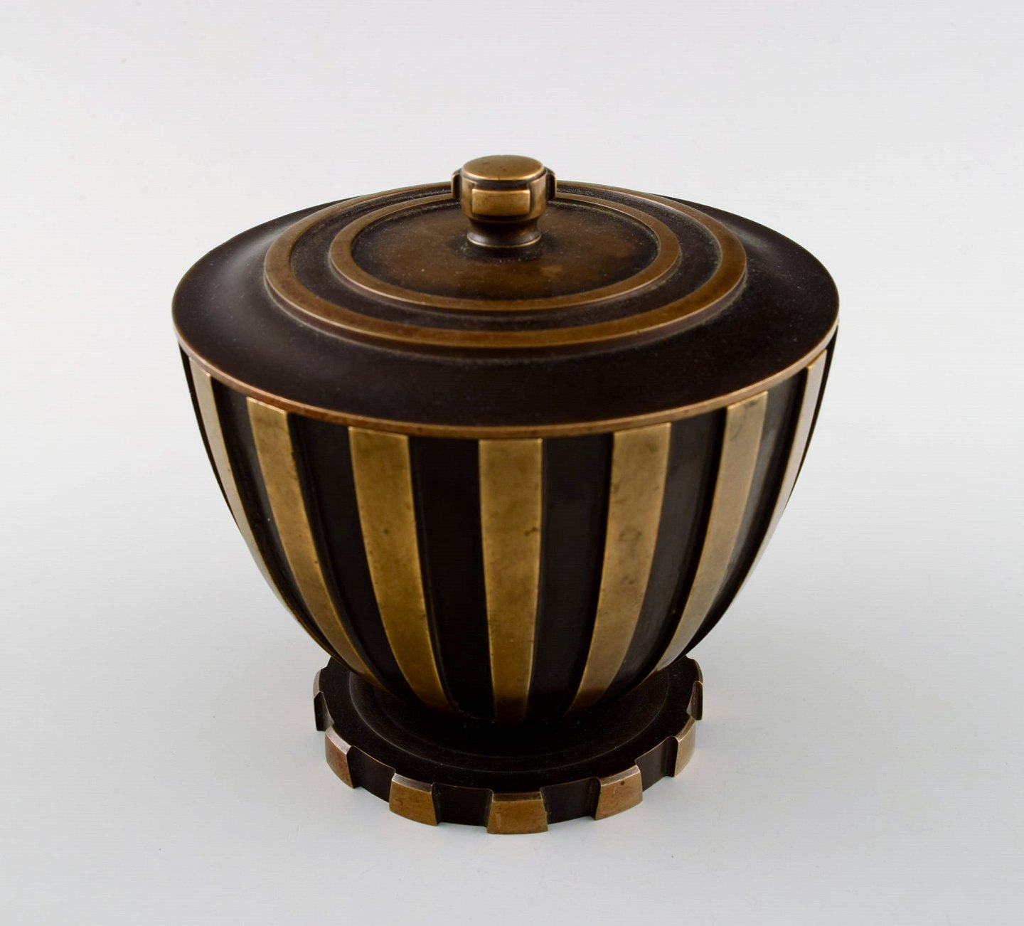 Tinos stil art deco lågkrukke i bronze. Danmark, 1940´erne. Ustemplet. I flot stand. Måler : 12 cm. x 11 cm.