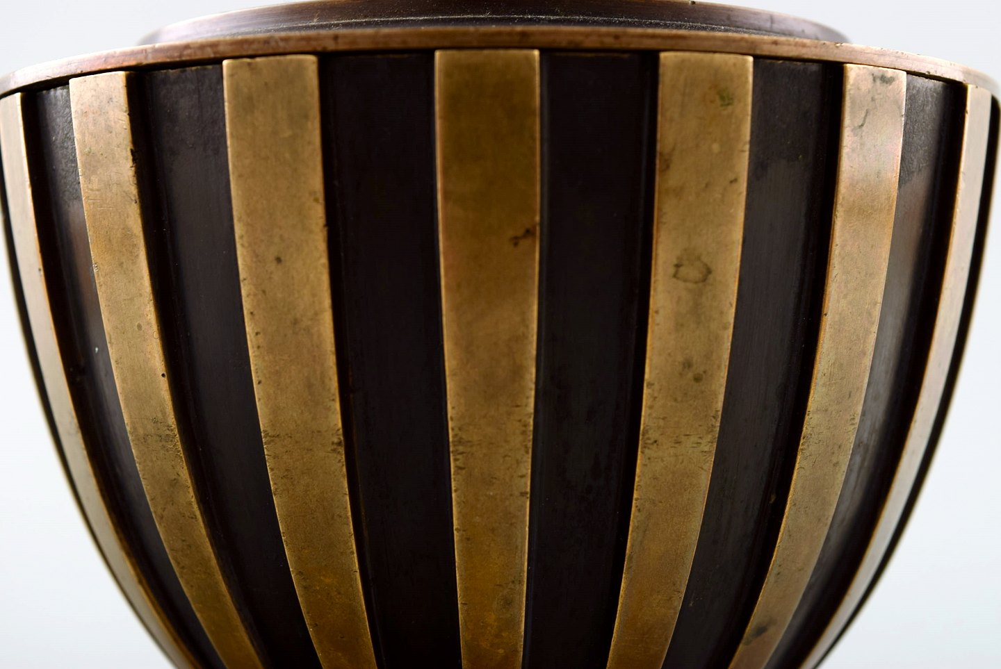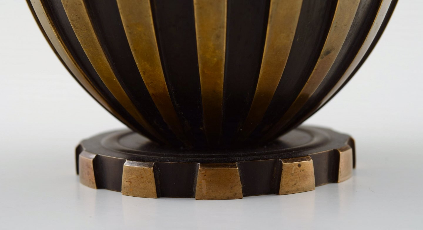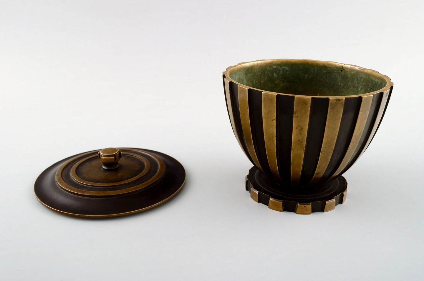 Tinos stil art deco lågkrukke i bronze. Danmark, 1940´erne. Ustemplet. I flot stand. Måler : 12 cm. x 11 cm.