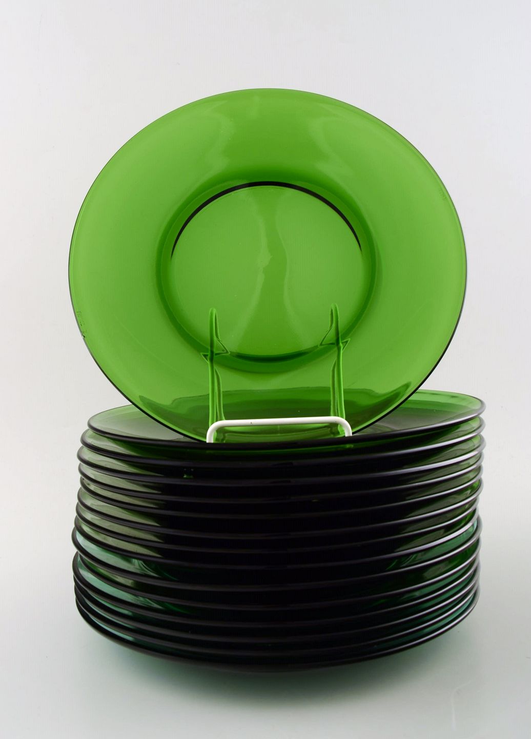Vereco, Frankrig, 15 tallerkener i grønt kunstglas. Ca. 1960´erne. Måler: : 22.5 cm. Stemplet. I perfekt stand.