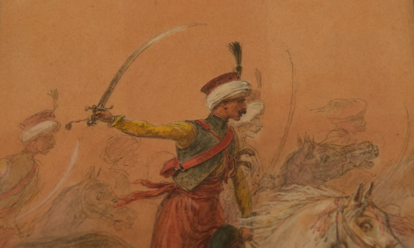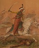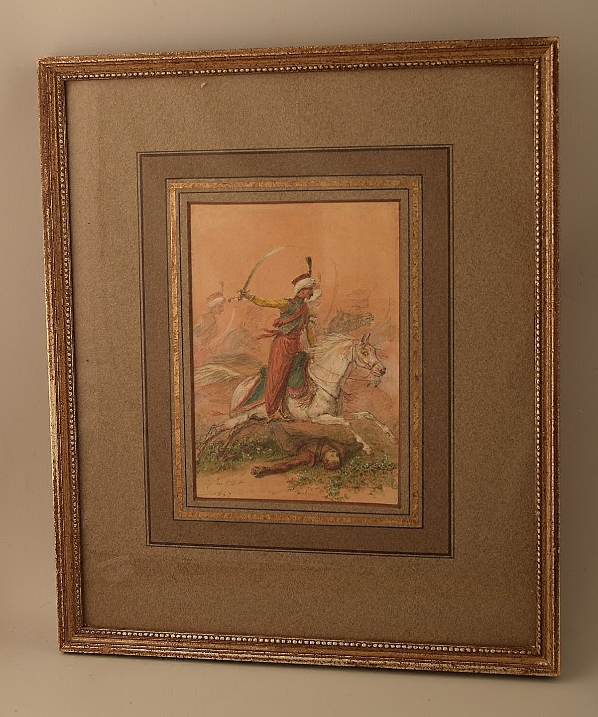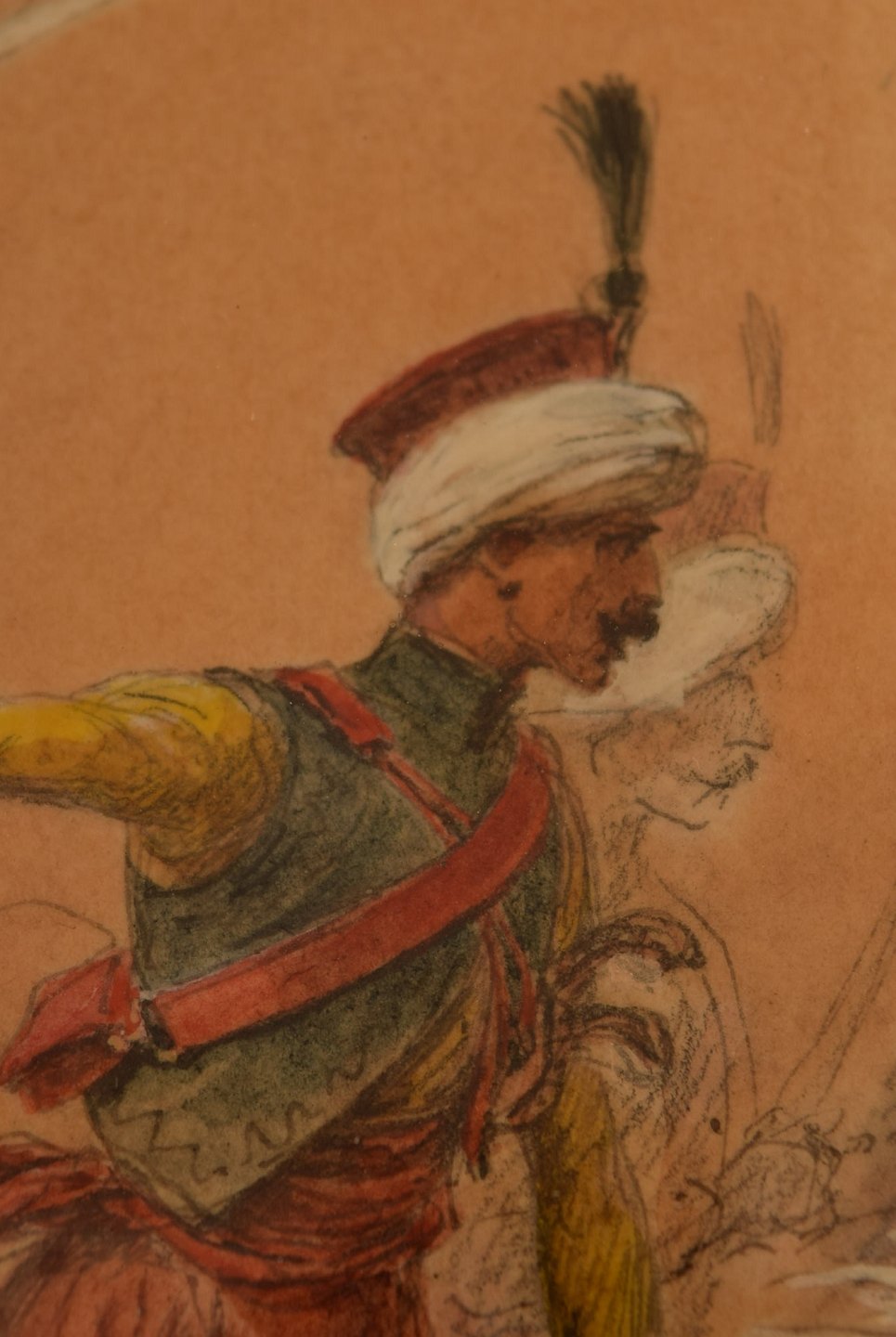 Signeret Raffet 1847. Bly, vandfarve og gouache på papir monteret i passepartout.