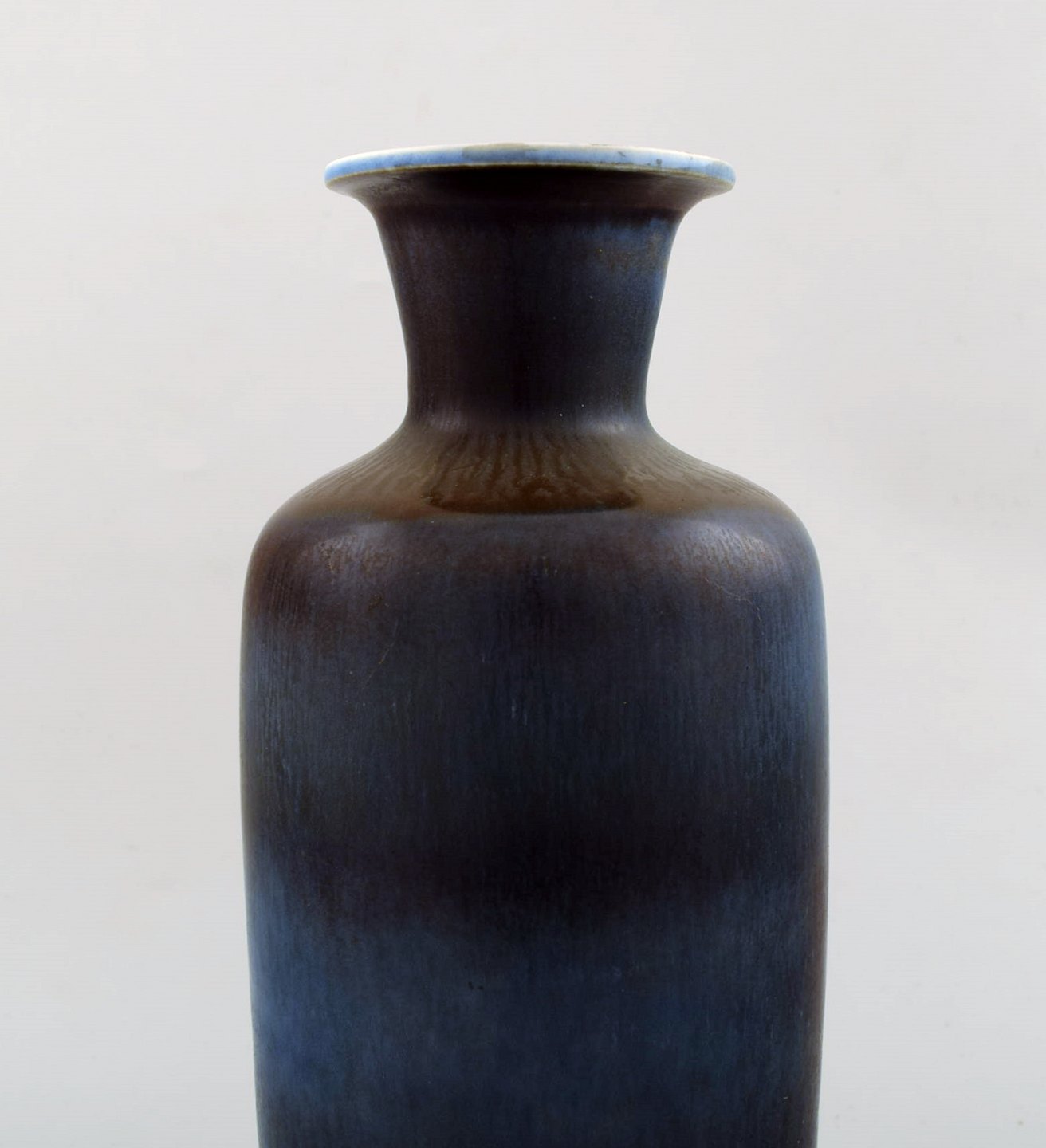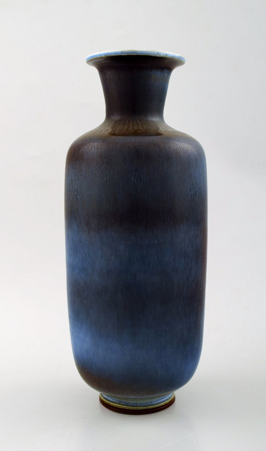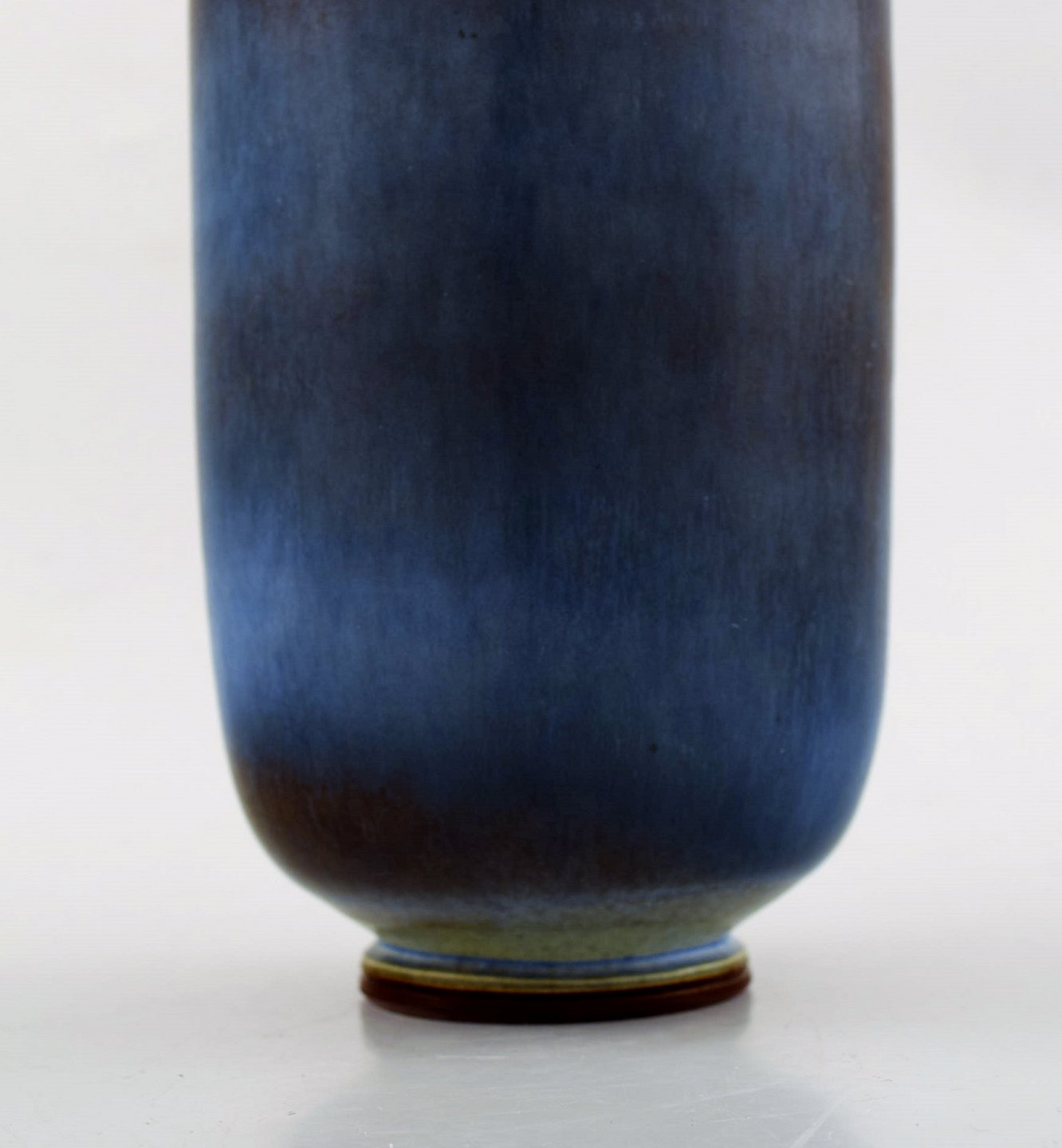 Berndt Friberg Studio stor keramikvase. Moderne svensk design. Unika, håndlavet. Dateret 1975. Fantastisk glasur i blå toner. Perfekt stand. 1. sortering. Måler: 24,5 cm. x 11 cm.