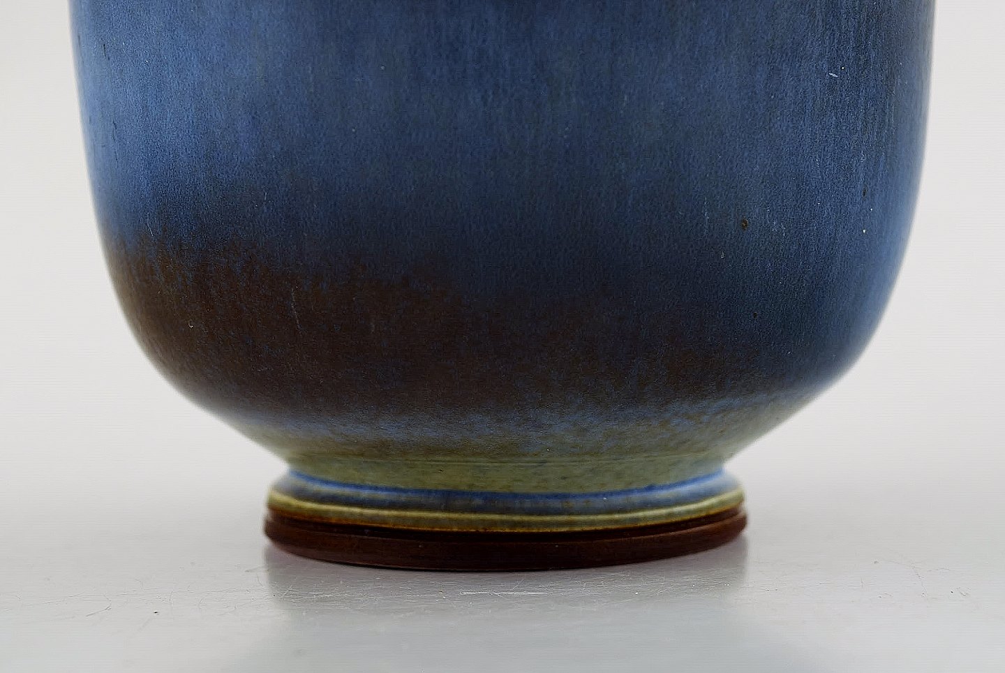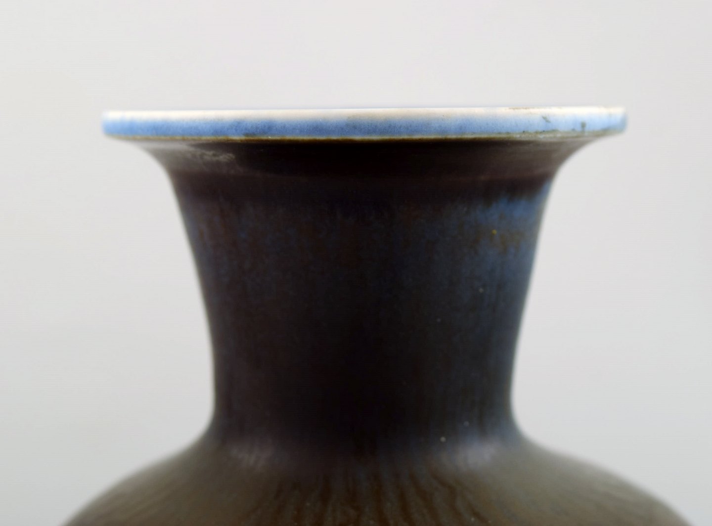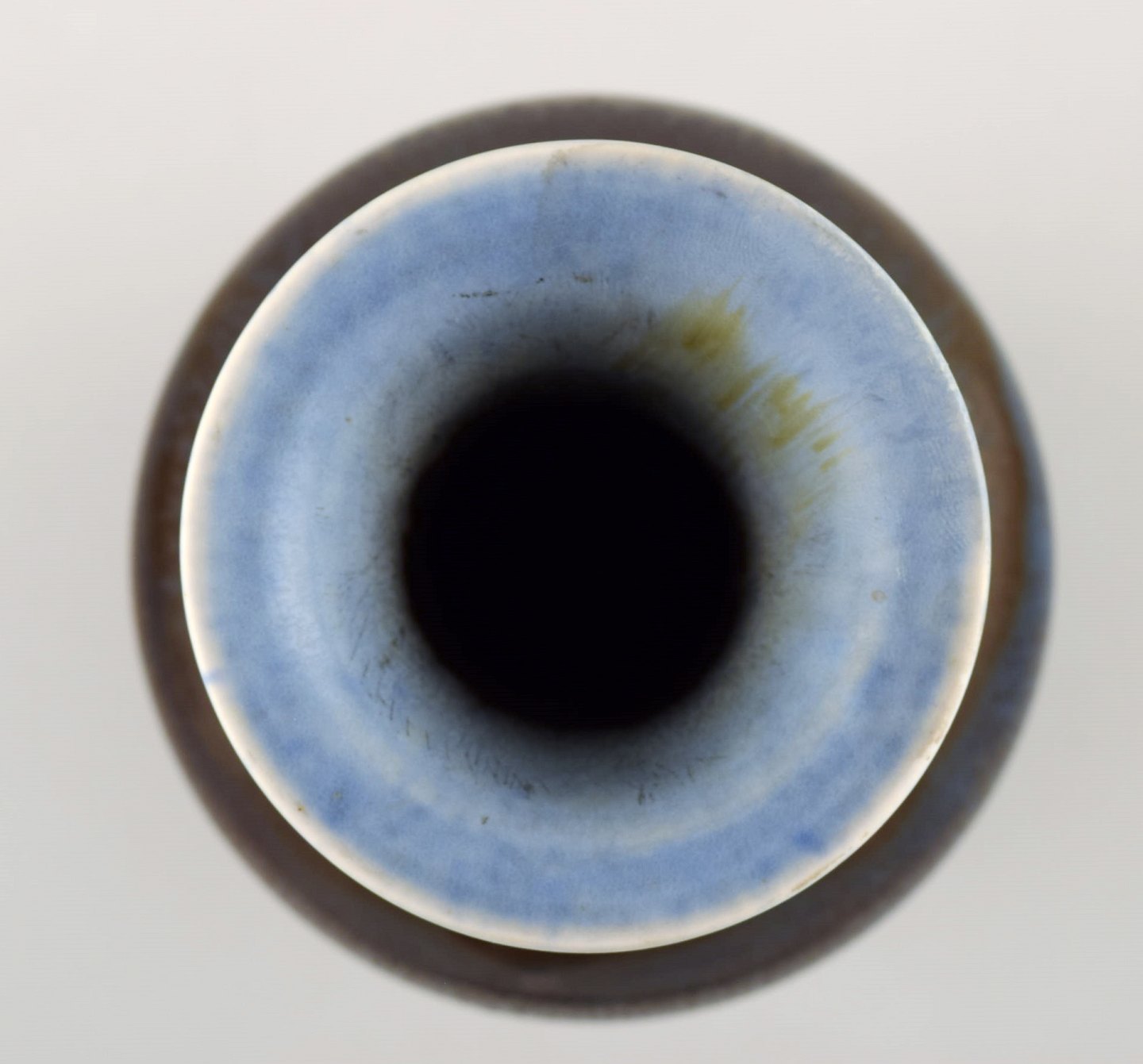 Berndt Friberg Studio stor keramikvase. Moderne svensk design. Unika, håndlavet. Dateret 1975. Fantastisk glasur i blå toner. Perfekt stand. 1. sortering. Måler: 24,5 cm. x 11 cm.