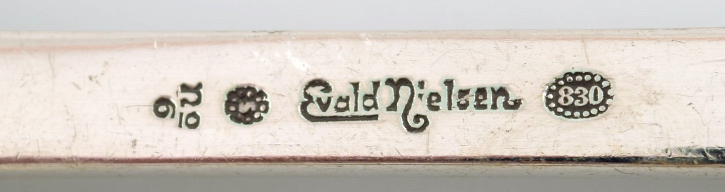 Evald Nielsen nummer 6, serveringsspade i helsølv. Måler 26,5 cm. Stemplet. I perfekt stand.