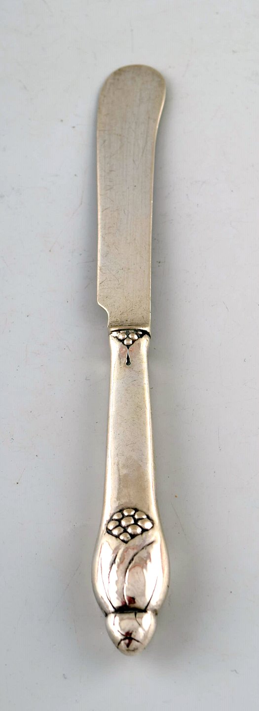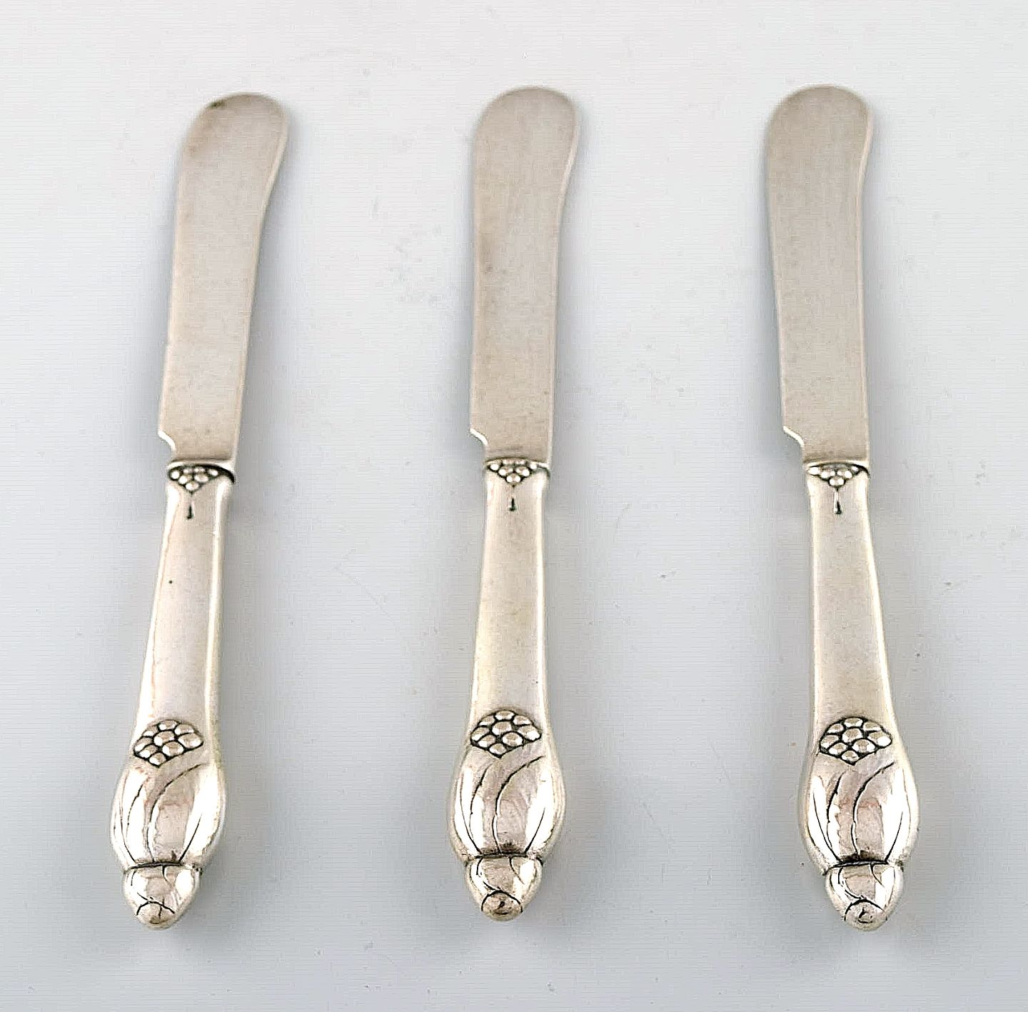 Evald Nielsen nummer 6, tre frugtknive i sølv. Måler 17,5 cm. Stemplet. I perfekt stand.