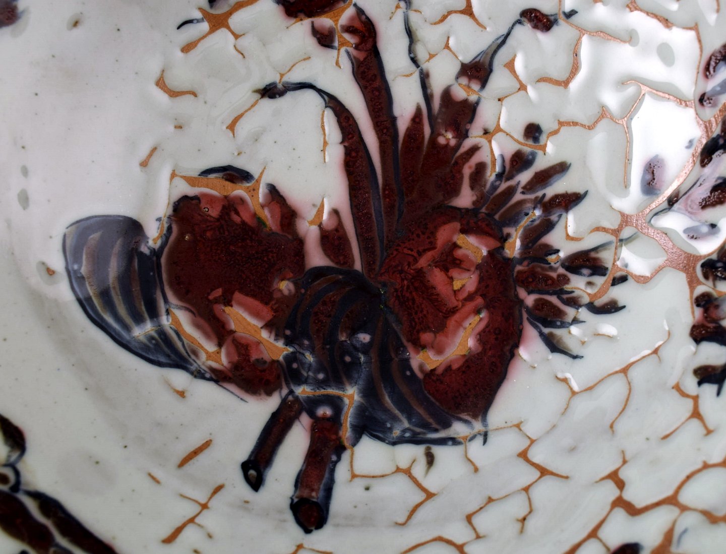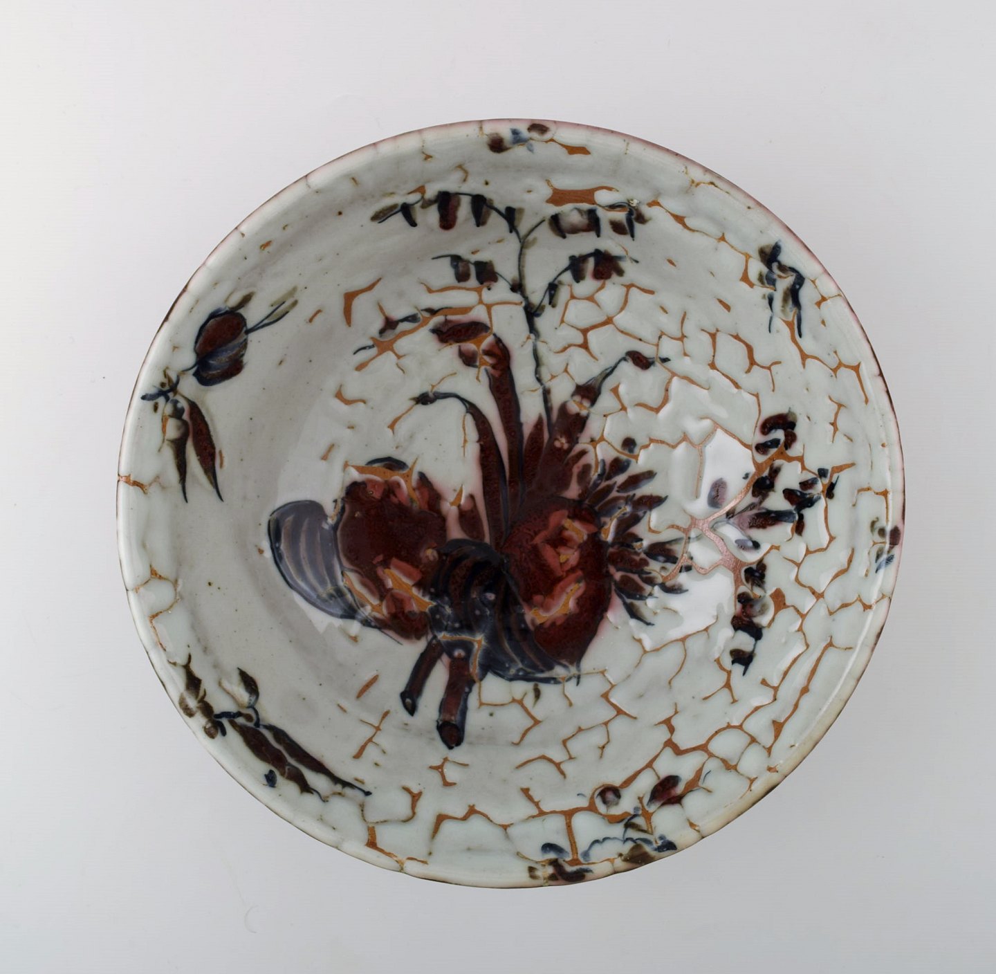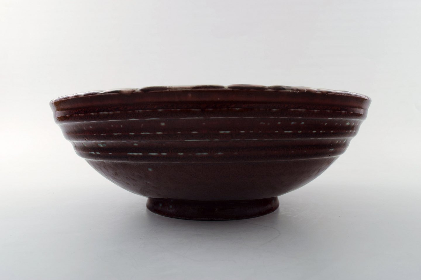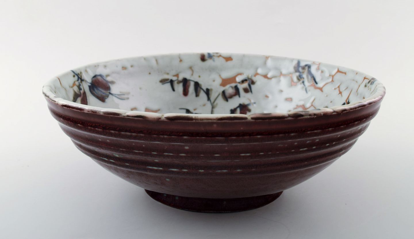 Royal Copenhagen keramik. Unika skål signeret af Thorkild Olsen, ca. 1950. Smuk okseblodsglasur. 1. sortering. Måler 27,5 cm. x 9 cm. Perfekt stand.