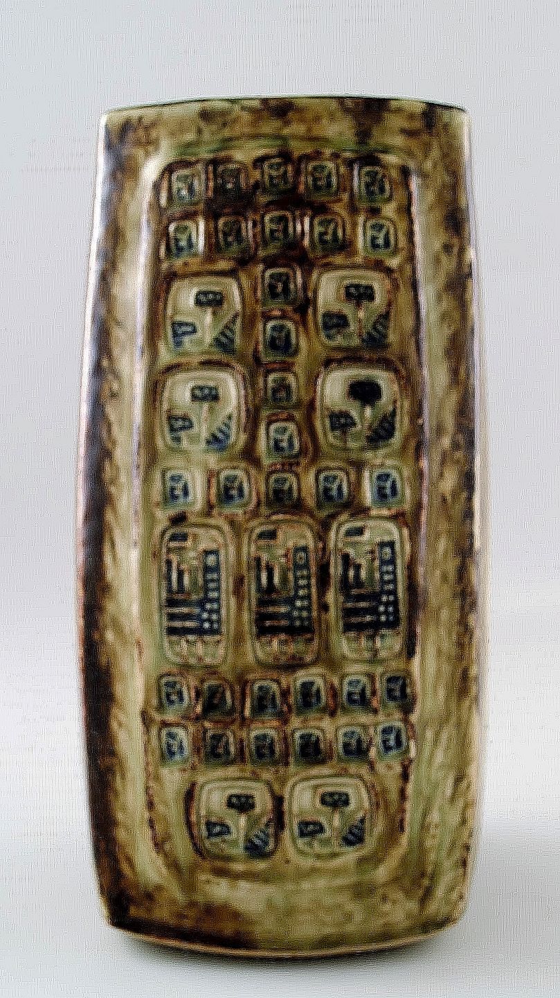 Royal Copenhagen stentøjsvase af Jørgen Mogensen. 1970´erne. Størrelse: 24 cm. høj. 11 cm. i diameter. Nummer: 21923 3. sortering. I perfekt stand.
