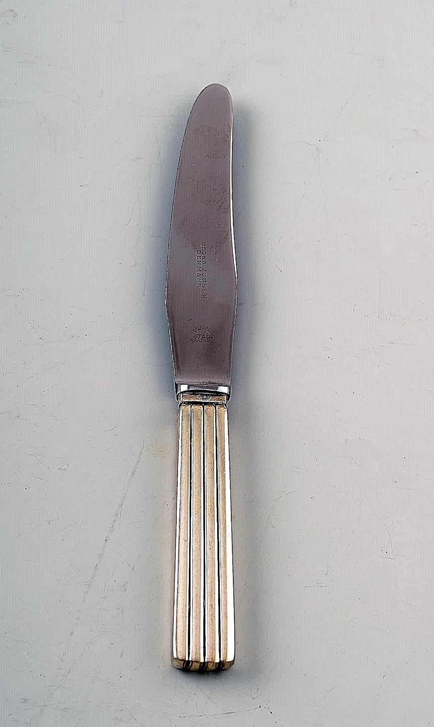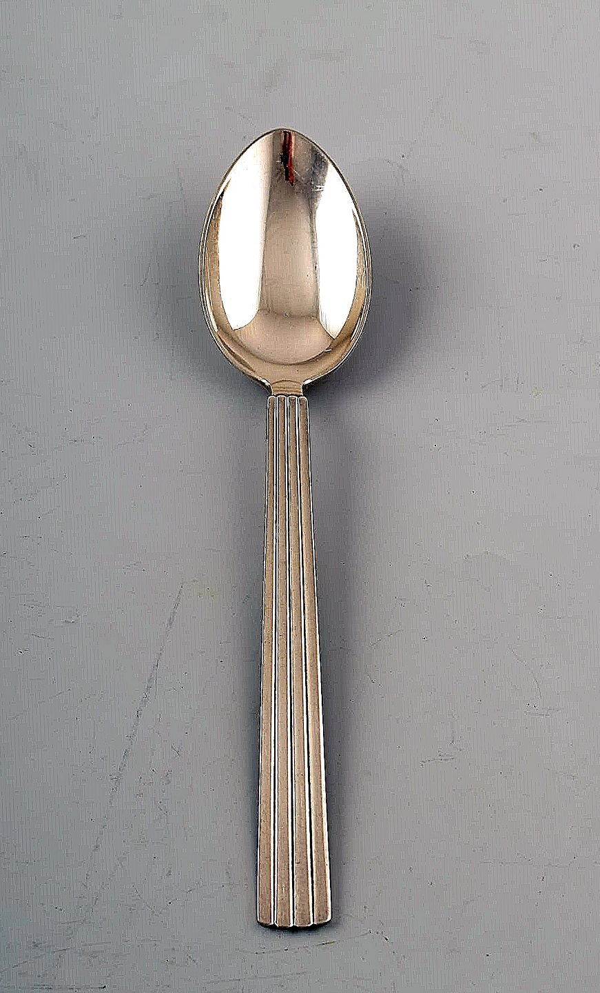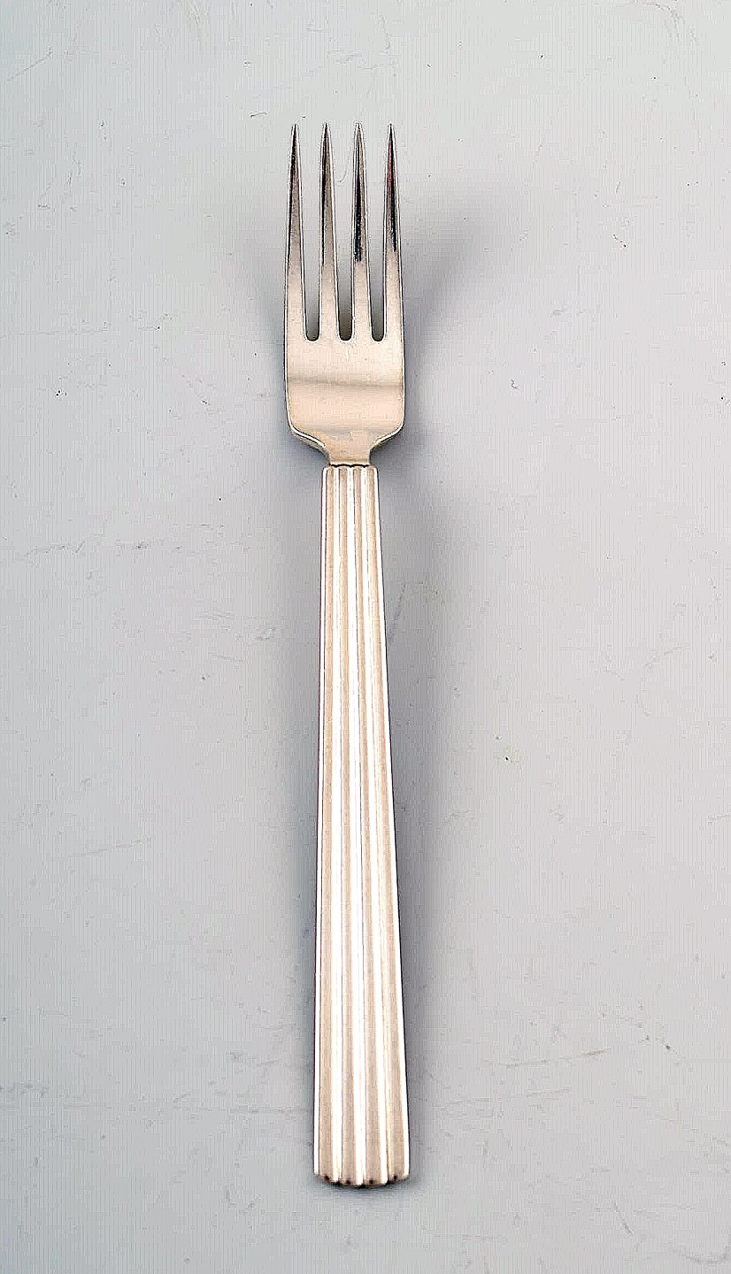 Det elegante bestik Bernadotte med det kanellerede skaft er tegnet af den svenske designer og kongesøn Sigvard Bernadotte for Georg Jensen Sølvsmedie i 1939.