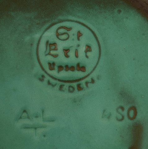 Anna-Lisa Thomson for Upsala-Ekeby Art deco keramik lågkrukke. Sverige midt 1900-tallet. I perfekt stand. Måler 16 cm. Stemplet. Upsala, ALT.