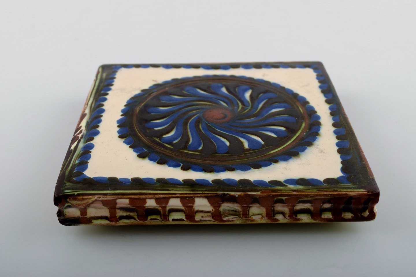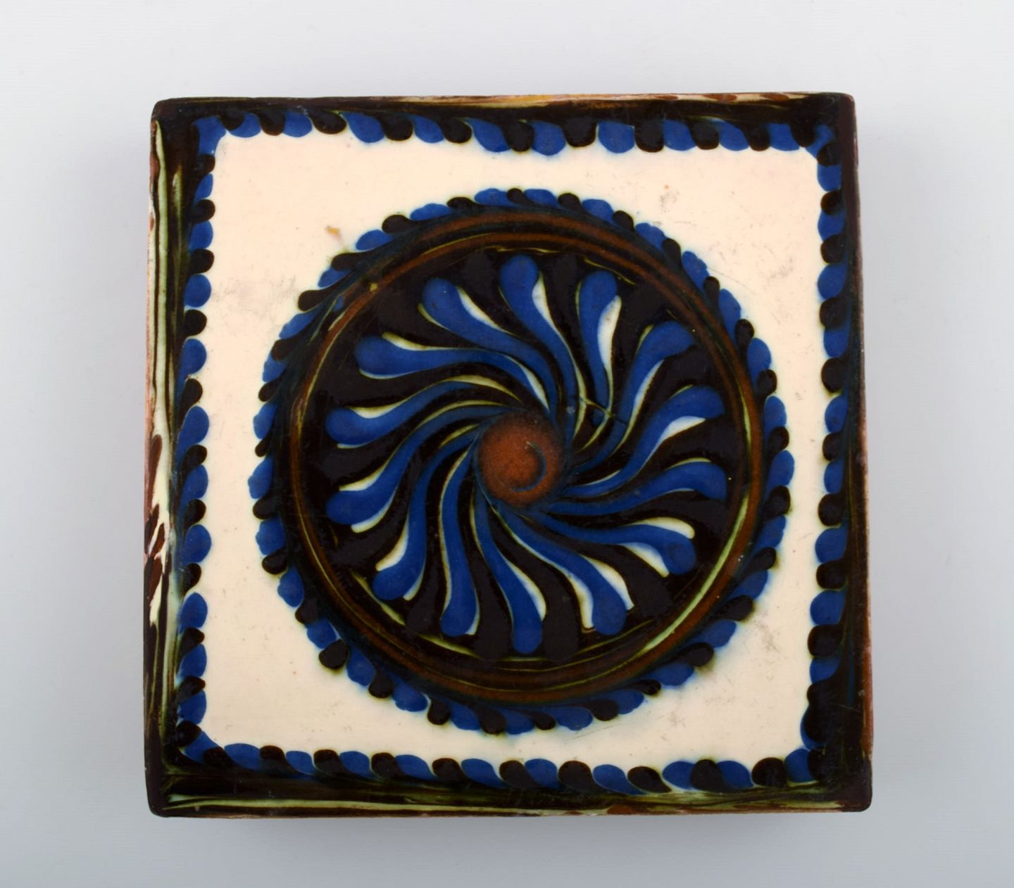 Kähler, HAK, glaseret stentøjsbordskåner. Ca. 1940´erne. Stemplet. Måler: 15 cm. x 2 cm. I perfekt stand.