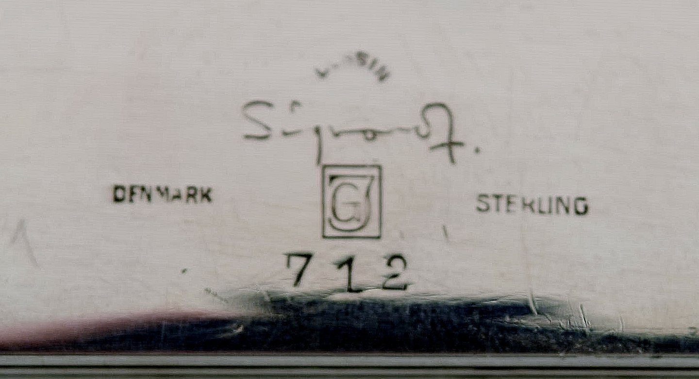 Georg Jensen Sterlingsølv Sigvard Bernadotte skrin nummer 712. 13.5 cm. x 8 cm. x 2.5 cm. Vejer 284 g. Tidligt stempel : 1933-1945. i perfekt stand.