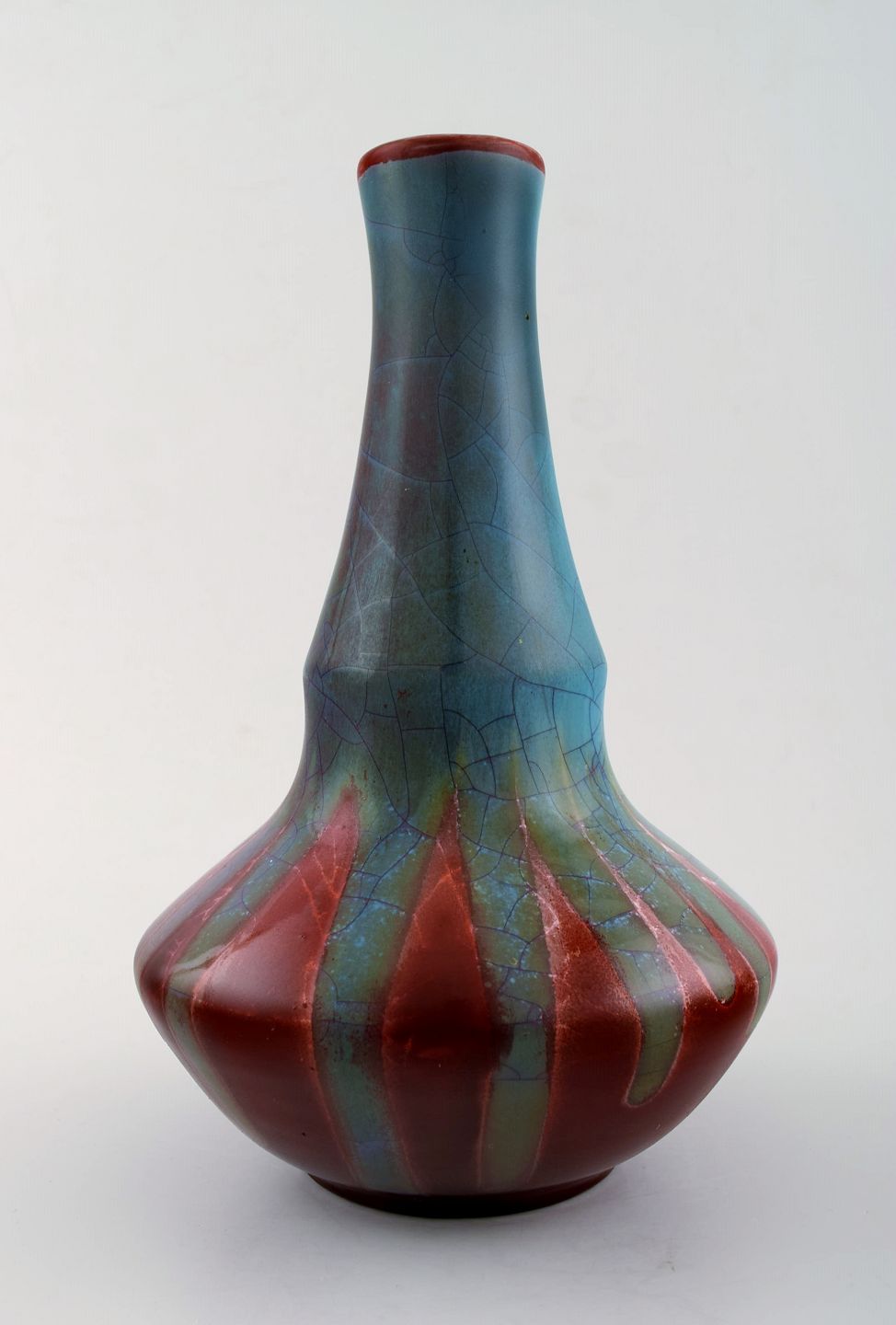 Stor og tidlig Kähler, usædvanlig form og glasur, keramik vase. Måler 24 x 16 cm. I perfekt stand. Signeret HAK. Ca. 1910.