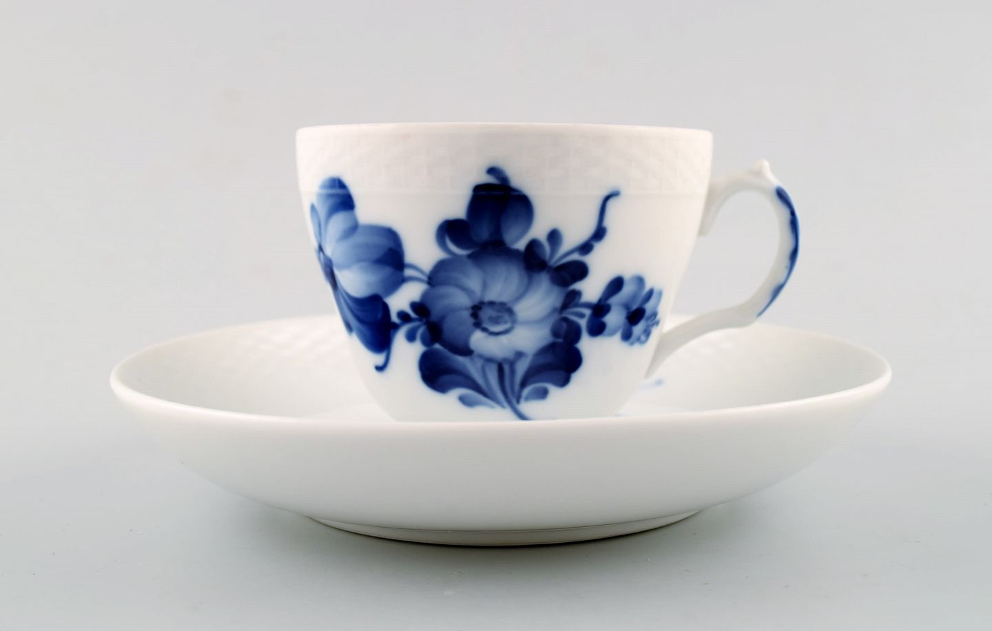 19 sæt Royal Copenhagen blå blomst, kaffekop med tilhørende underkop. Nummer 10/8040. I perfekt stand, 1. sortering. Måler : 6 cm.