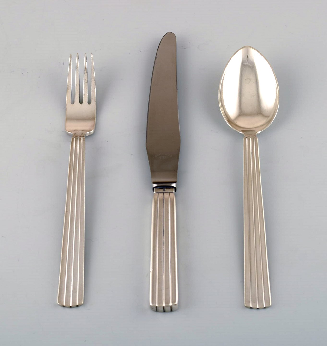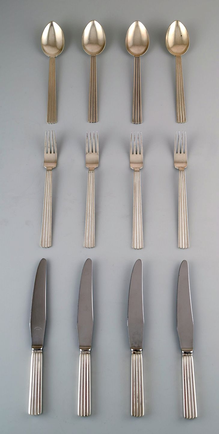 Bernadotte sølvbestik Georg Jensen komplet middagsservice til 4 pers. 12 dele. 4 middagsknive, 4 middagsgafler, 4 spiseskeer.