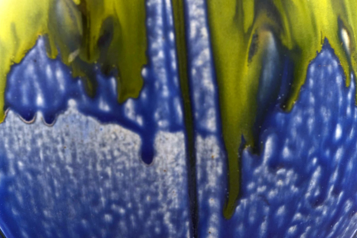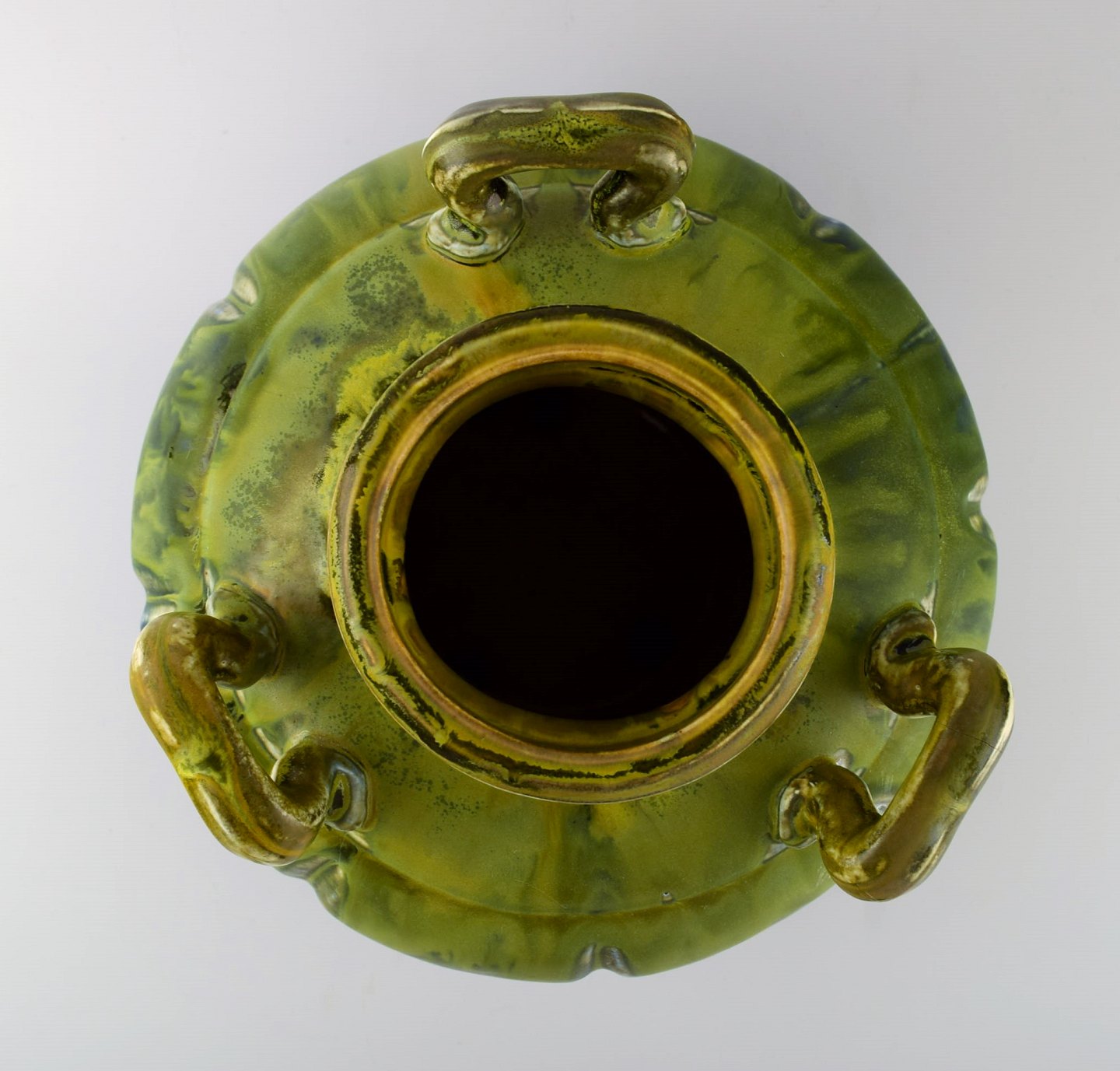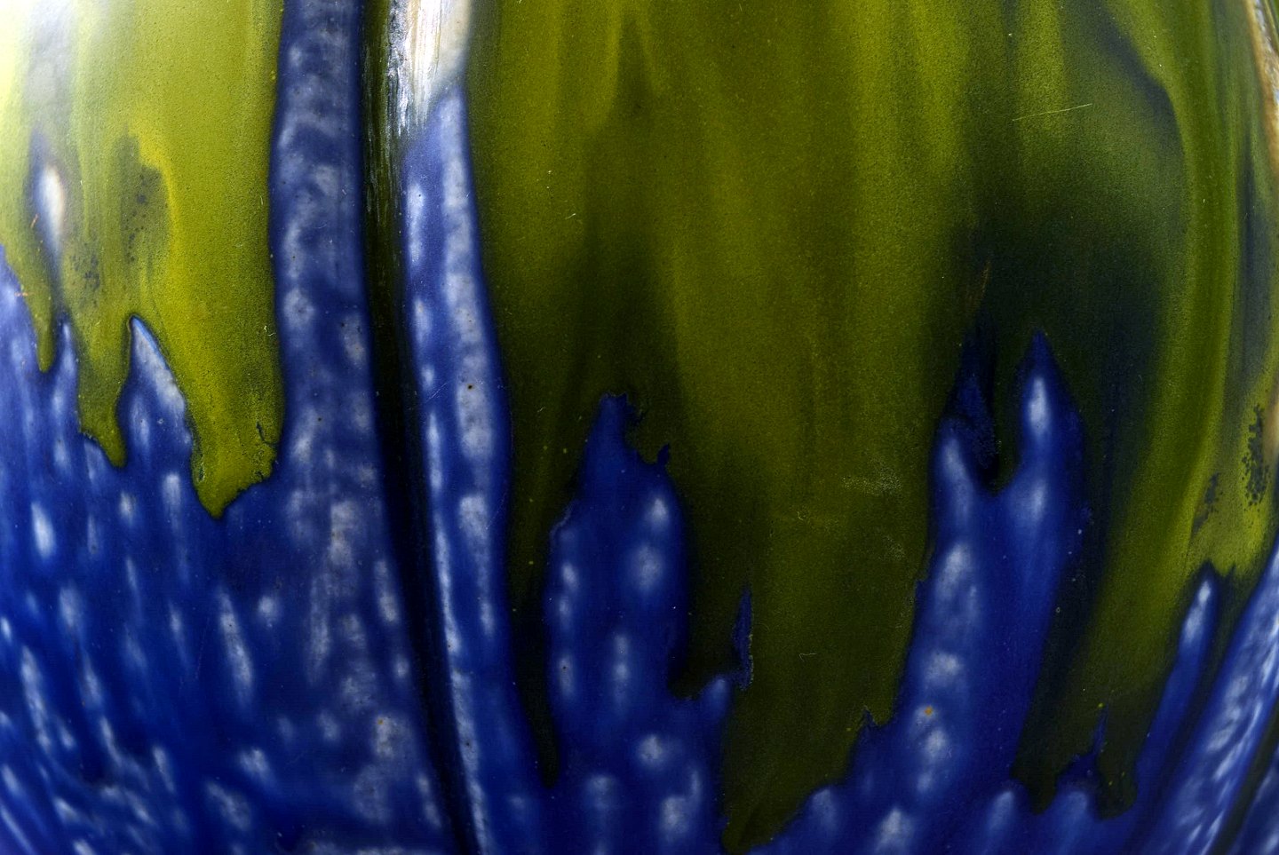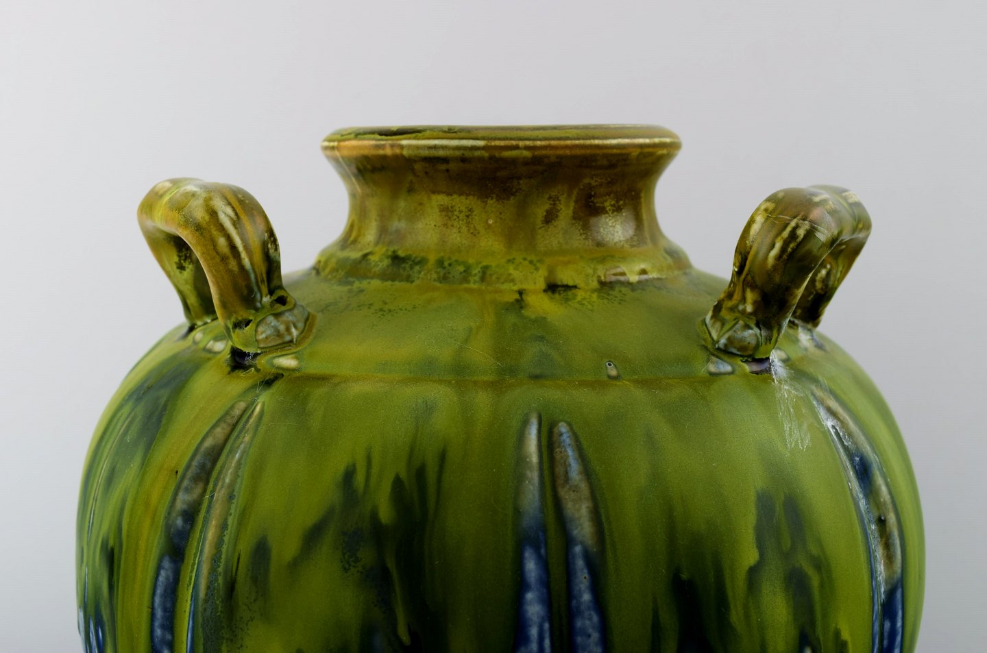 Gilbert Metenier, fransk keramiker. Art Deco vase med hanke i blå og grøn glasur. 1920-30´erne.