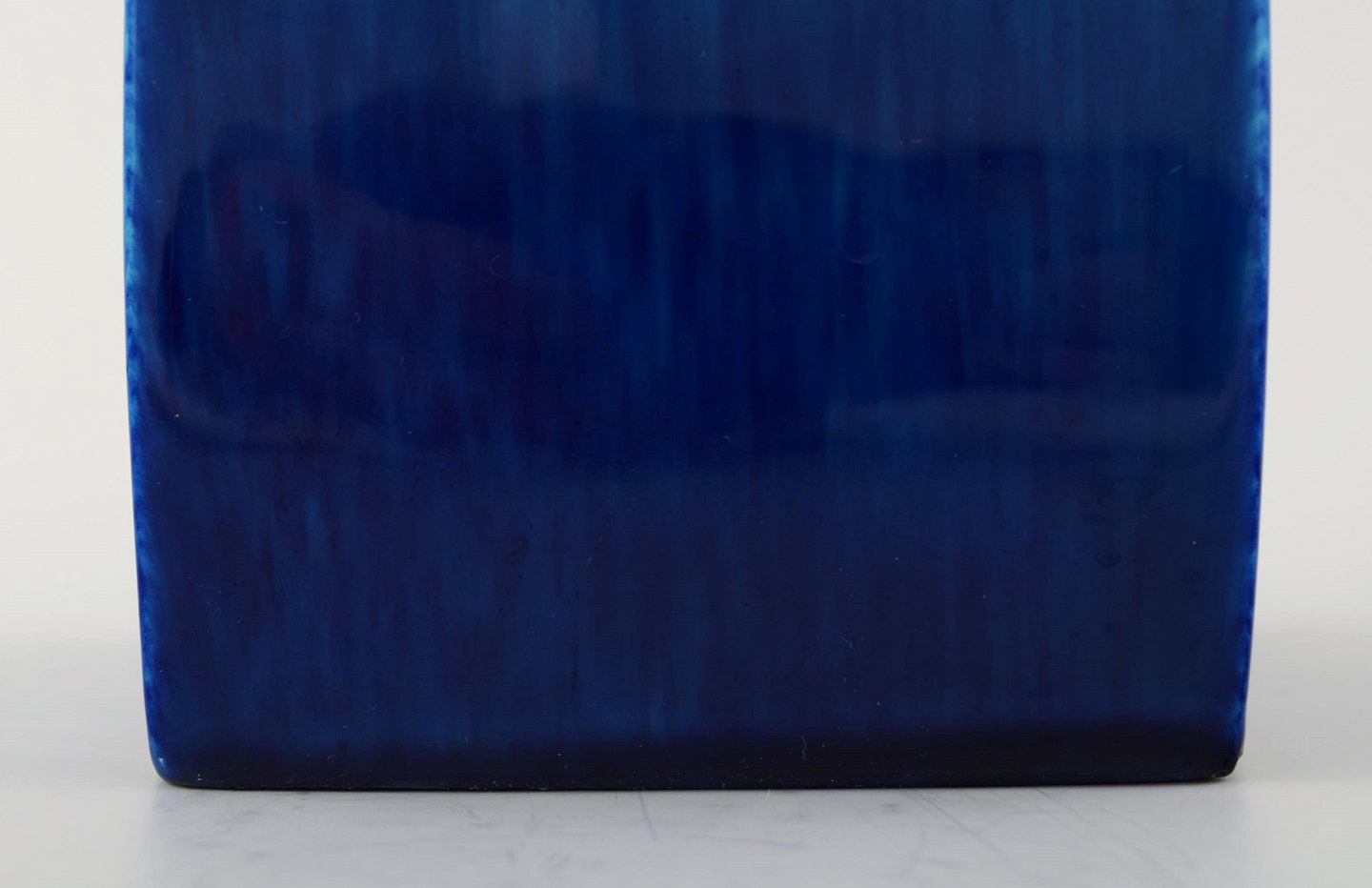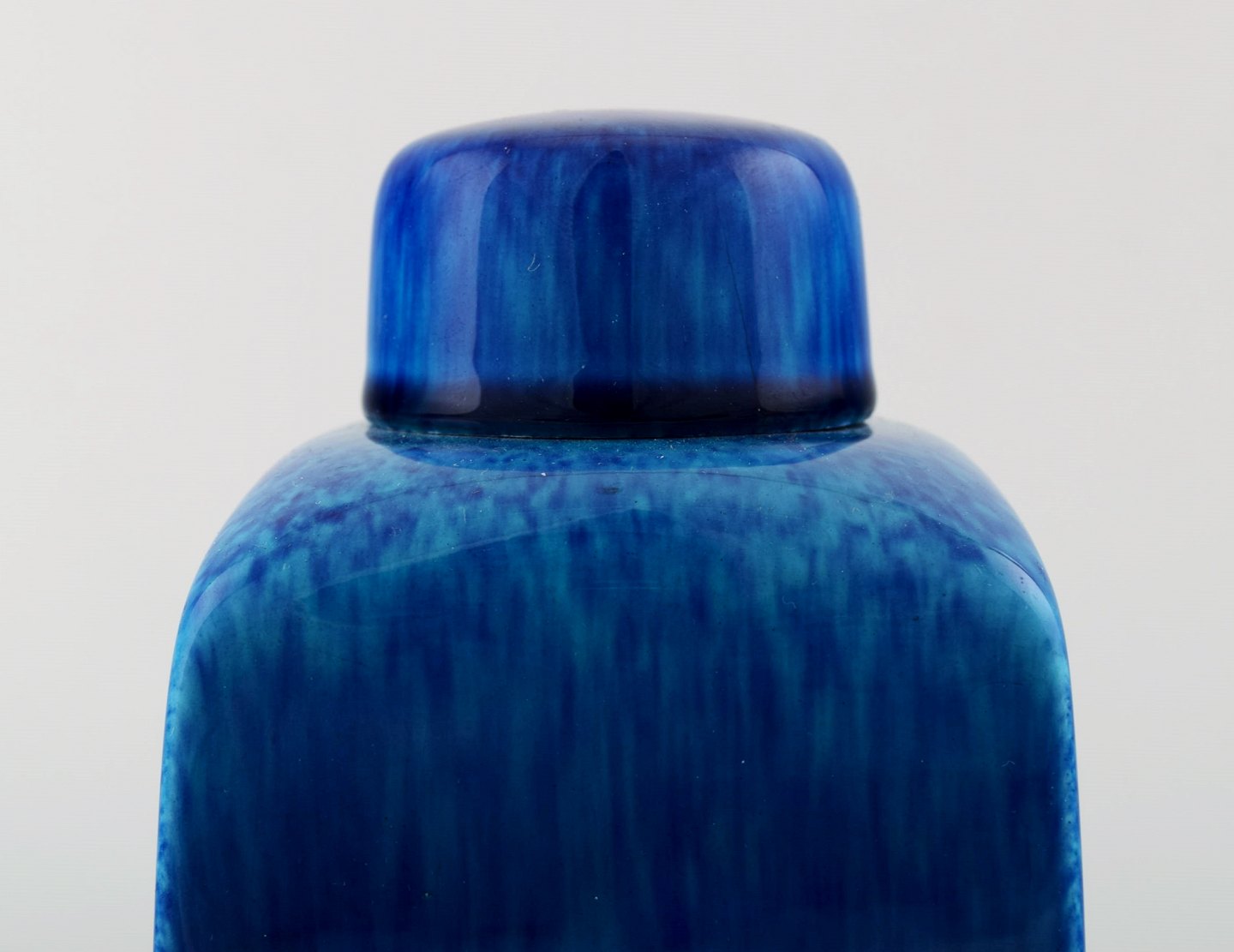 Paul Milet for Sevres, lågkrukke/tedåse i fajance, håndmalet i turkis overglasur. Frankrig, ca. 1930. Stemplet. I perfekt stand. Måler 14 cm. x 9 cm.