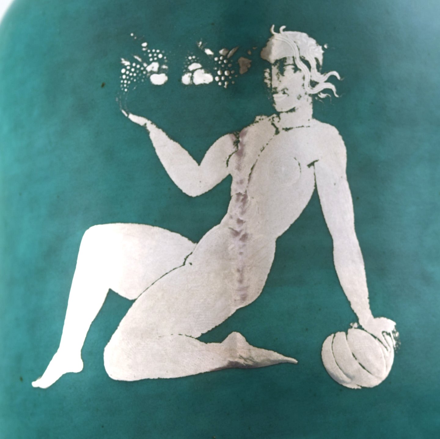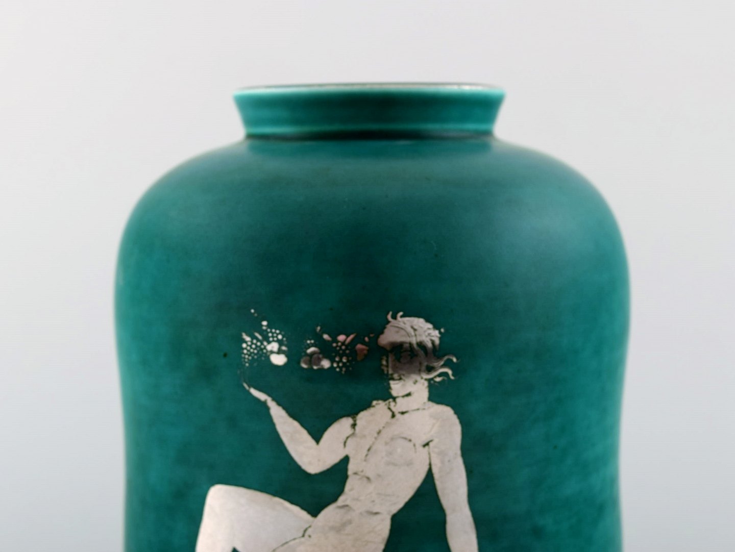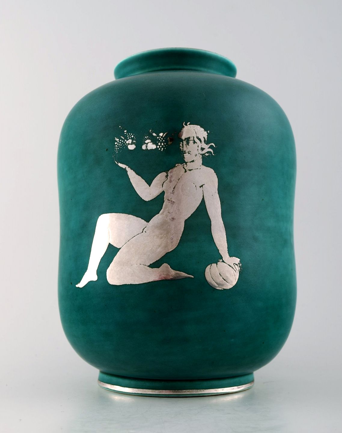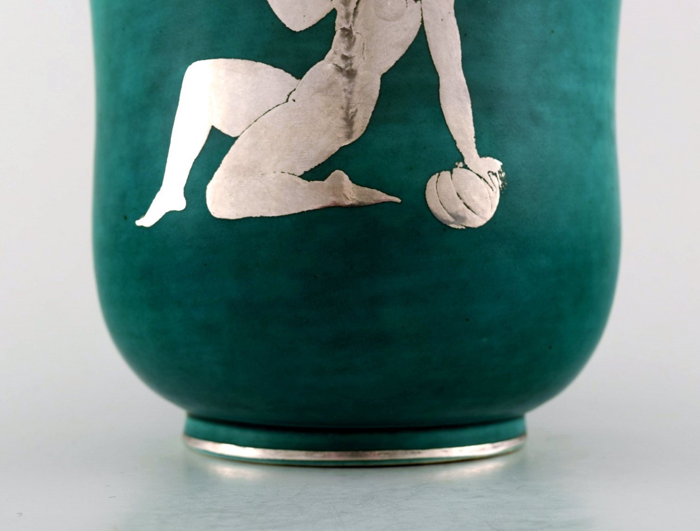 Wilhelm Kåge, Gustavsberg, Argenta Art deco keramikvase dekoreret med nøgen kvinde. Sverige 1940´erne. Måler 19,5 x 14,5 cm. Stemplet Gustavsberg, Kåge. I perfekt stand.