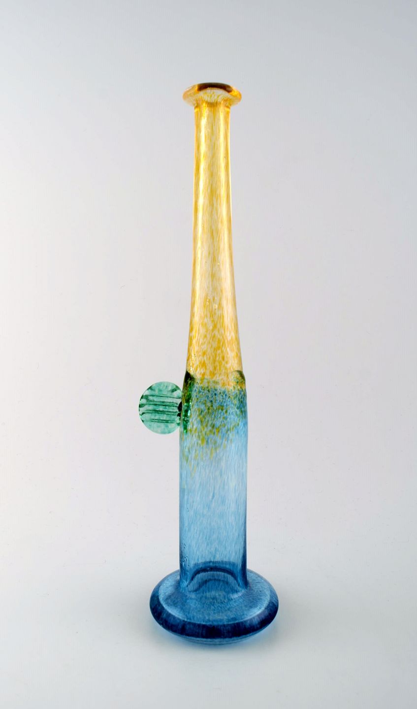 Kunstglasvase, designet af Bertil Vallien, fremstillet af Kosta Boda. I perfekt stand. Signeret. Højde: 34 cm. Bredde: 9 cm.