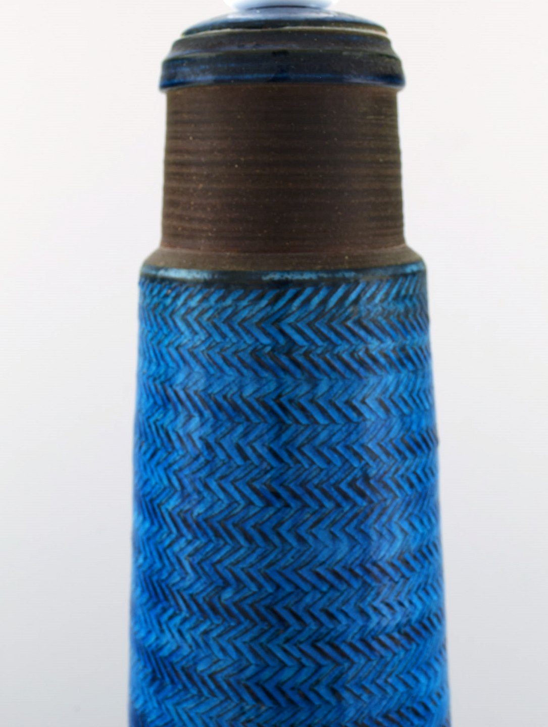 Kähler, HAK, glaseret stentøjslampe, 1960'erne. Designet af Nils Kähler. Turkis glasur. Måler 39 cm. høj x 14 cm. bred. Total højde 58 cm. Stemplet. I perfekt stand.