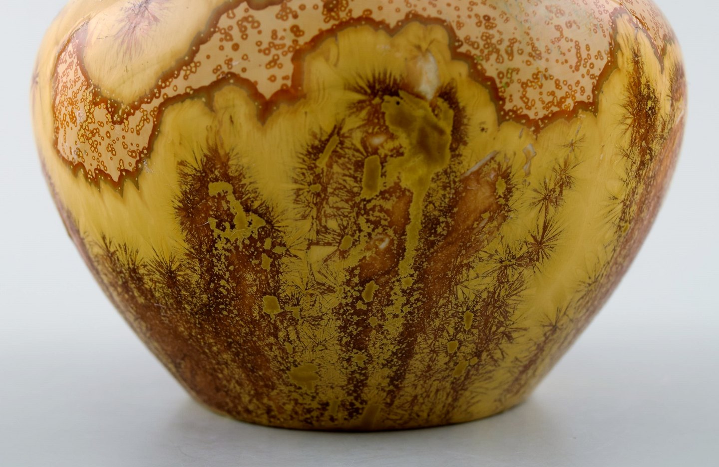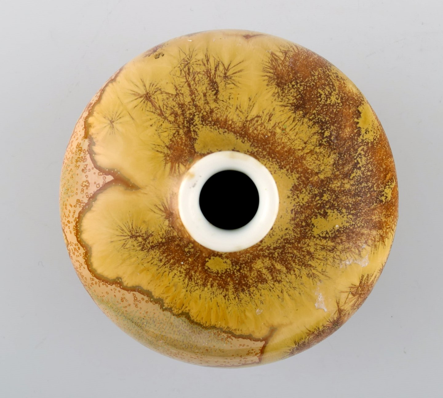 Sjælden Rörstrand/Rørstrand krystalglasur porcelænsvase. Fantastisk glasur. Måler : 12,5 cm. x 10 cm. Stemplet. Ca. 1920. I perfekt stand.
