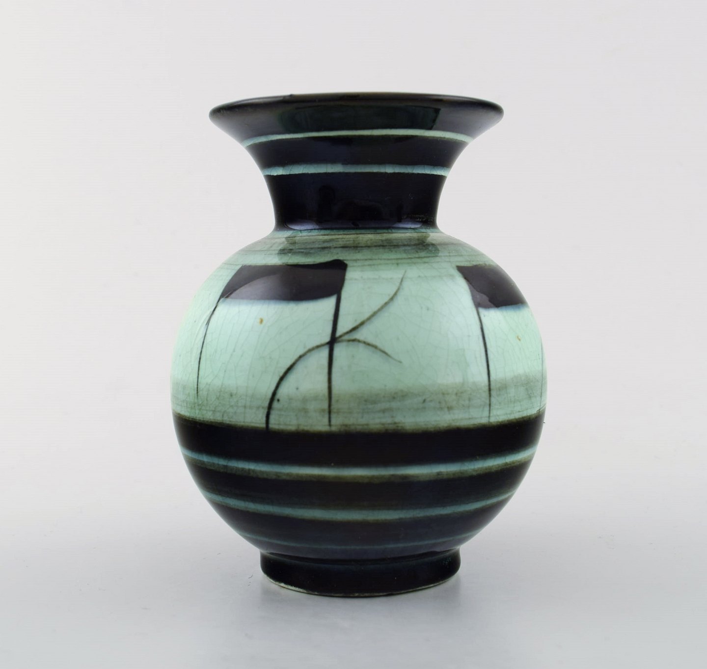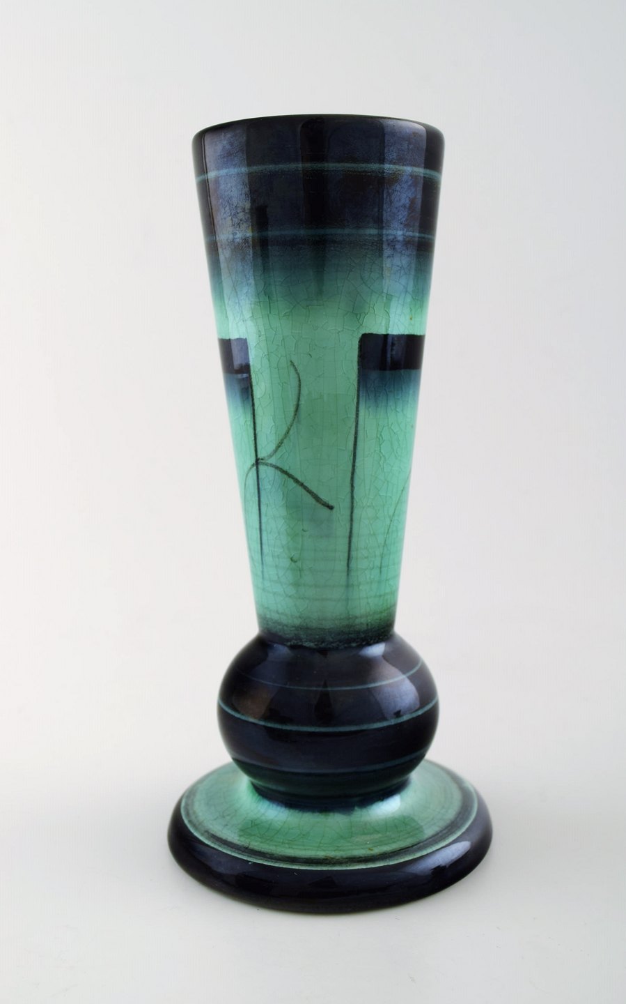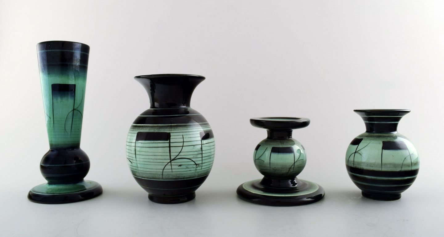 ILSE CLAESSON "Serie V", Art deco fajancevaser samt lysestage. Rörstrand/Rørstrand, 1930/40´erne.