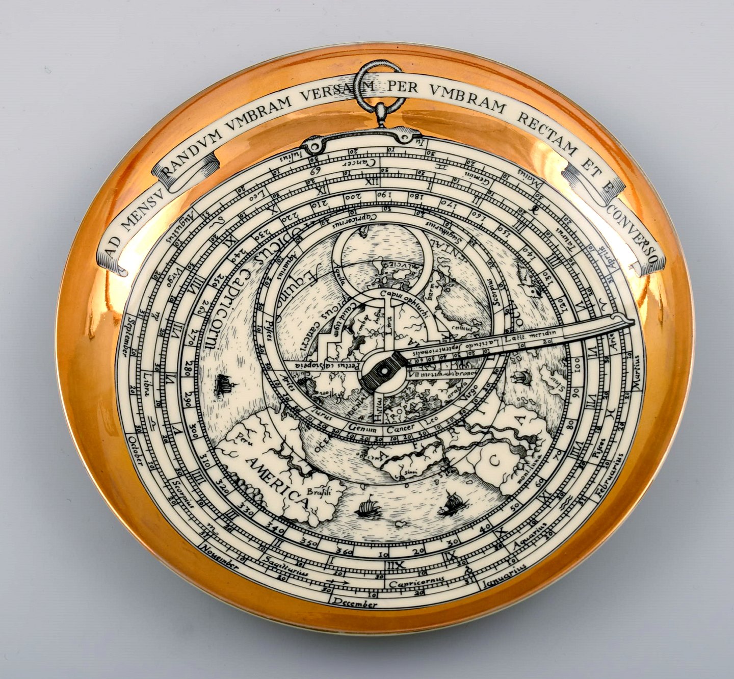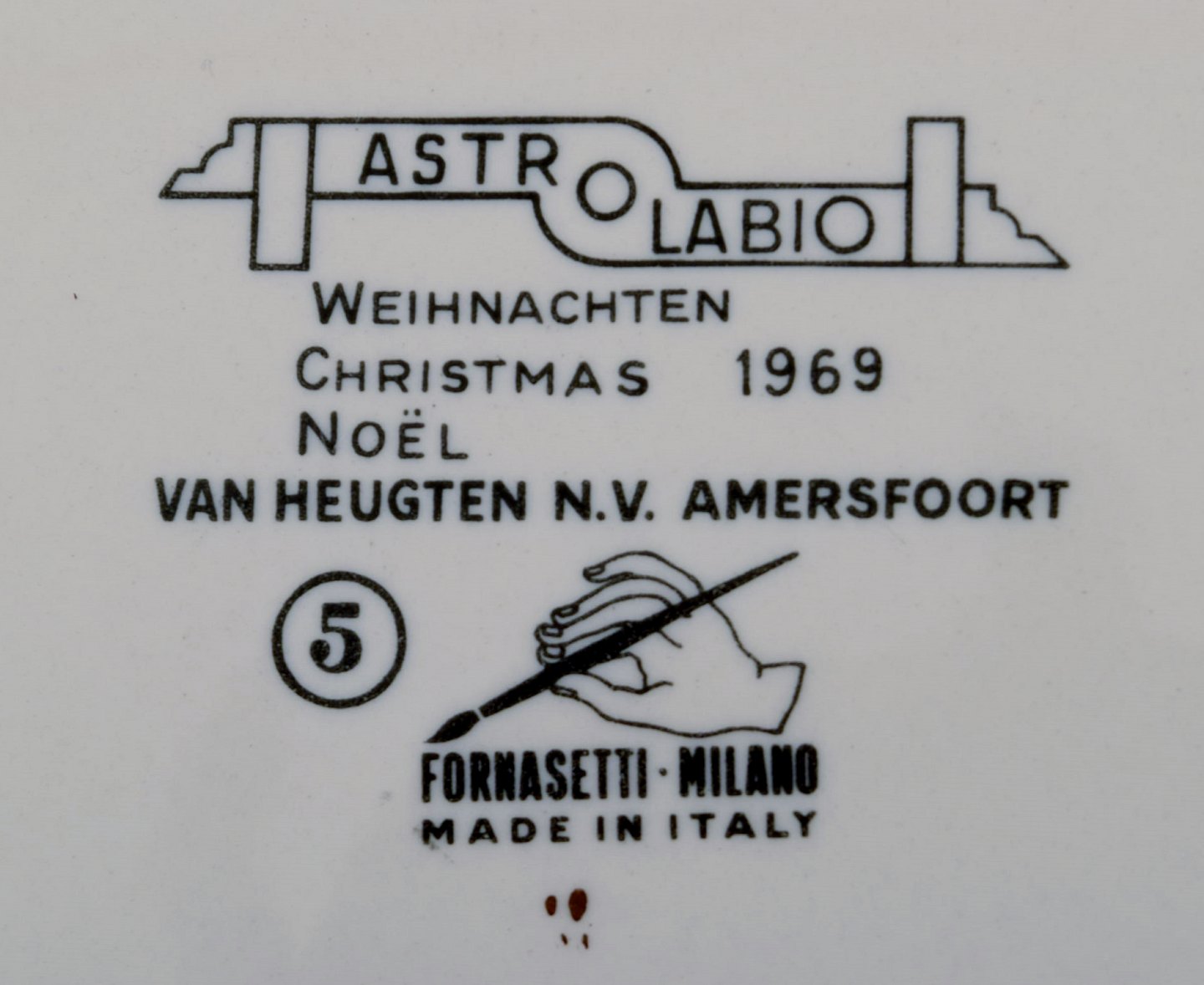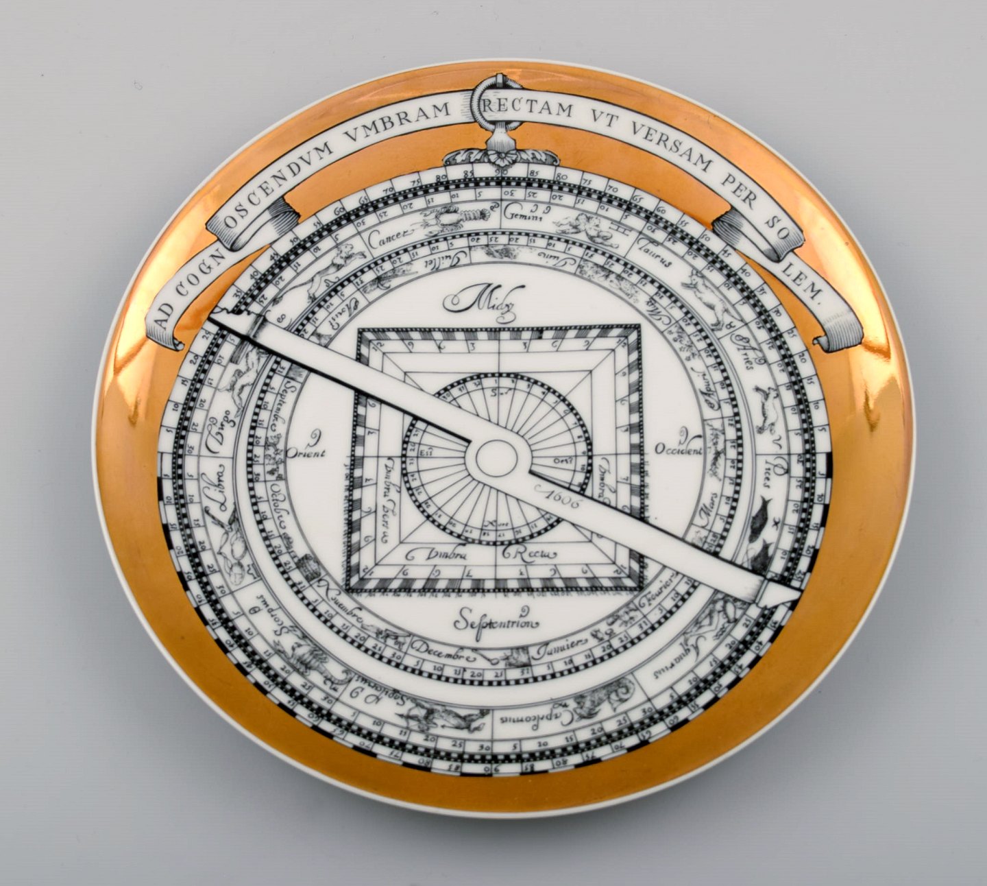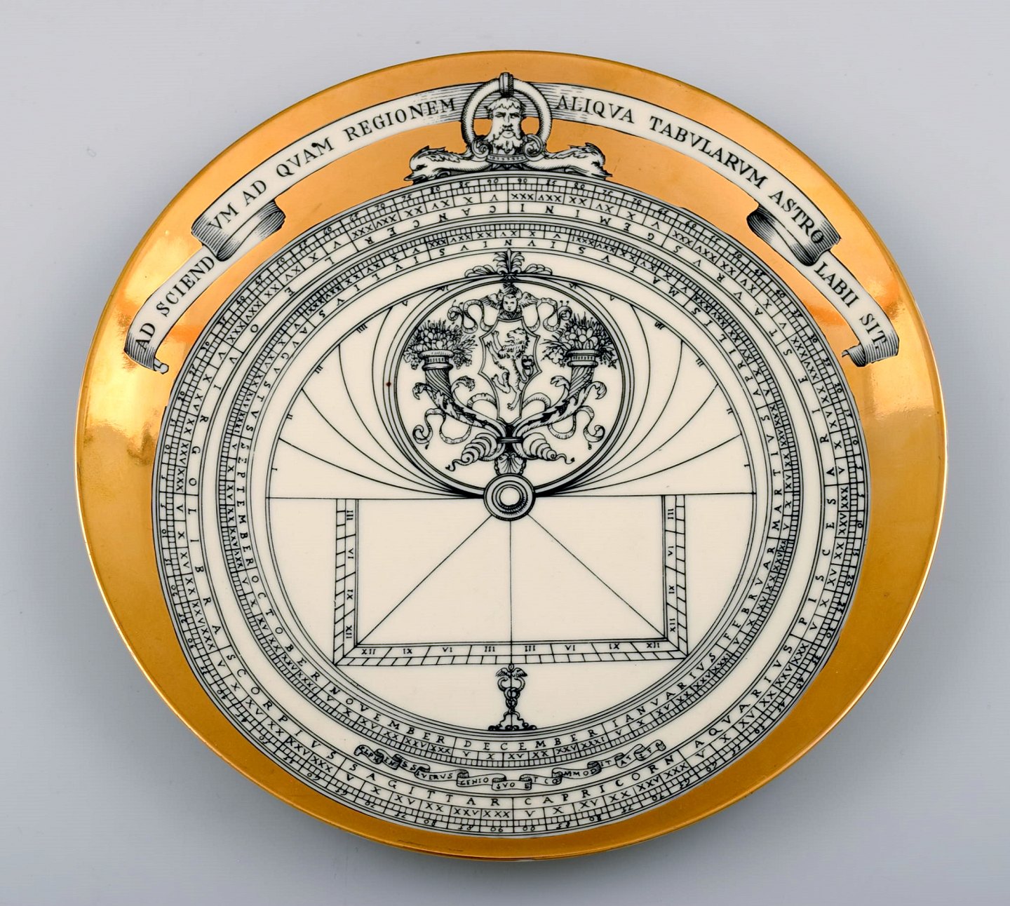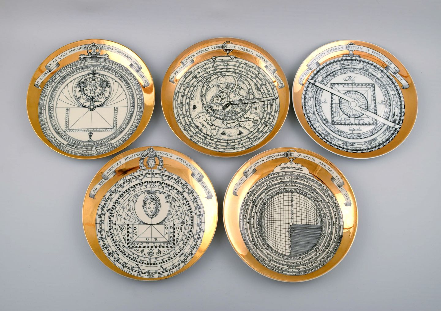Fornasetti, Milano, fem tallerkener i porcelæn. Made in Italy. Måler : 24 cm. I perfekt stand.