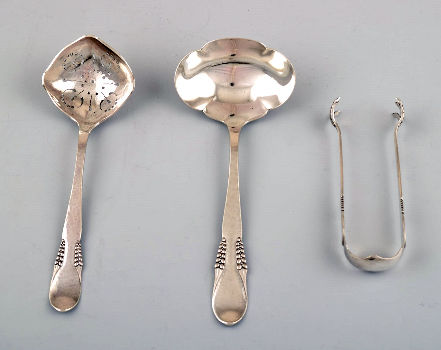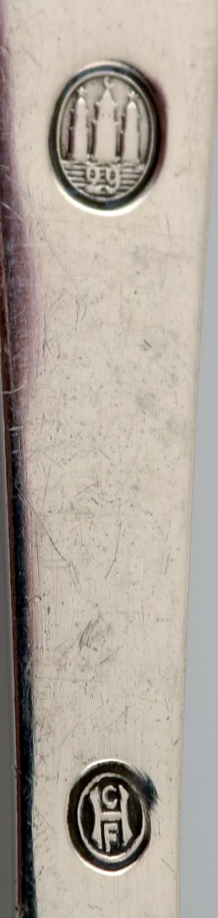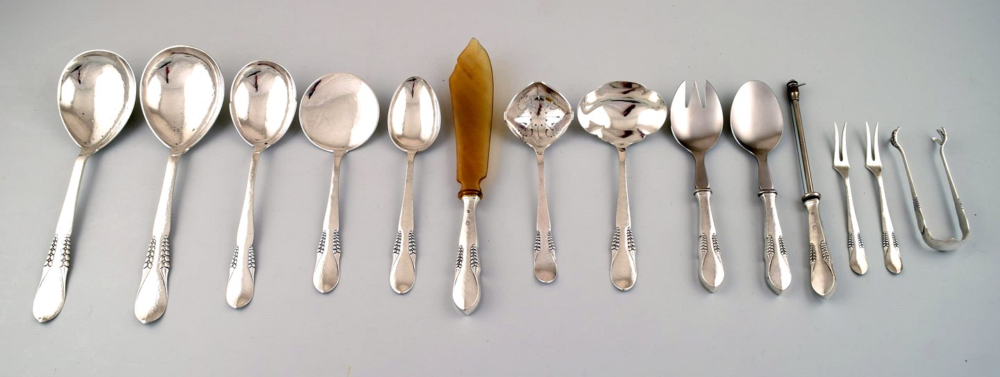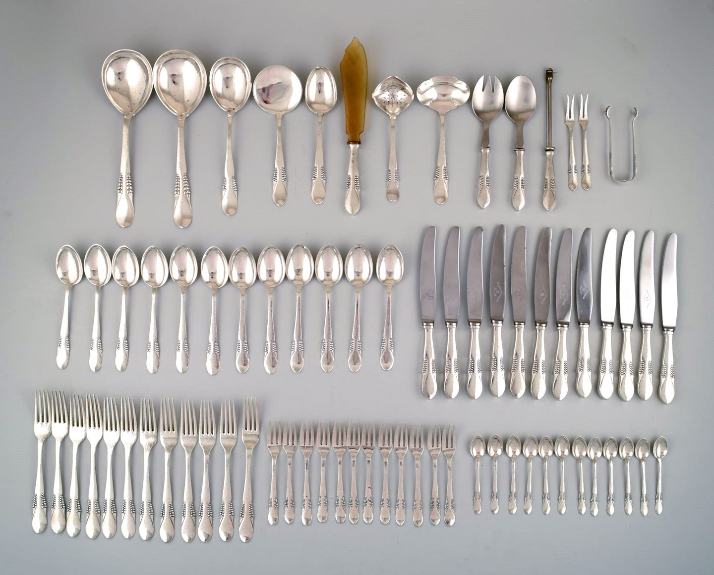 Stort komplet dansk tretårnet middagsservice til 12 personer. Stemplet : CFH : Christian Fr. Heise stadsguardein. 1910/20´erne. I flot stand. Kniv måler 25 cm. Serveringsske 26 cm.