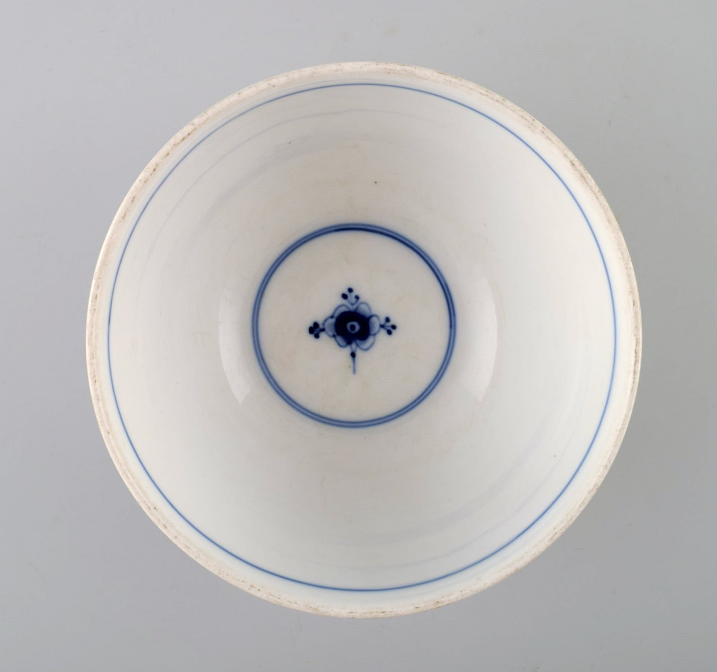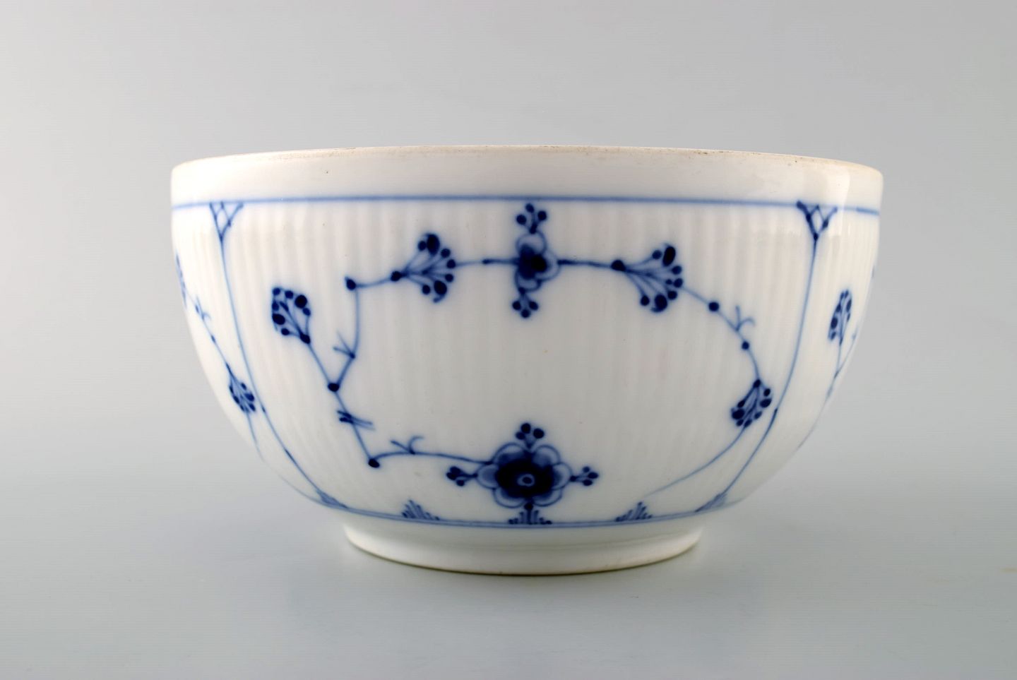 Antik Royal Copenhagen Musselmalet riflet skål. Midt 1800-tallet. Malernummer 16. Måler : 15 cm. x 8 cm. I perfekt stand. 1. sortering.