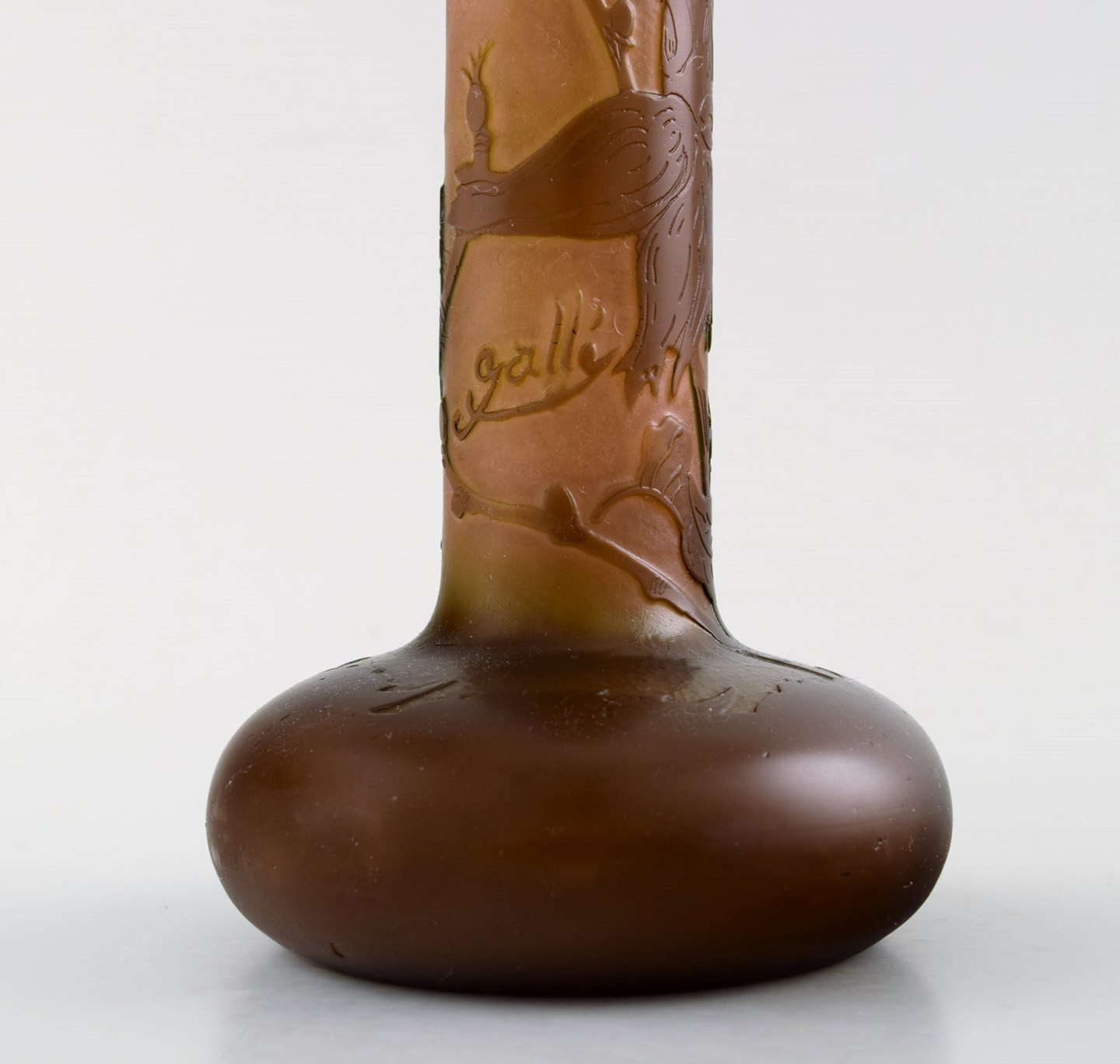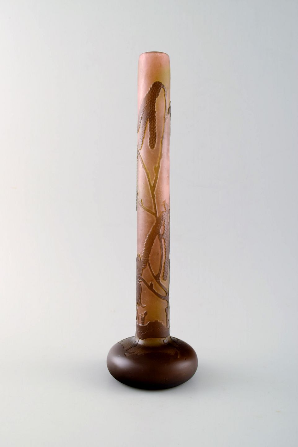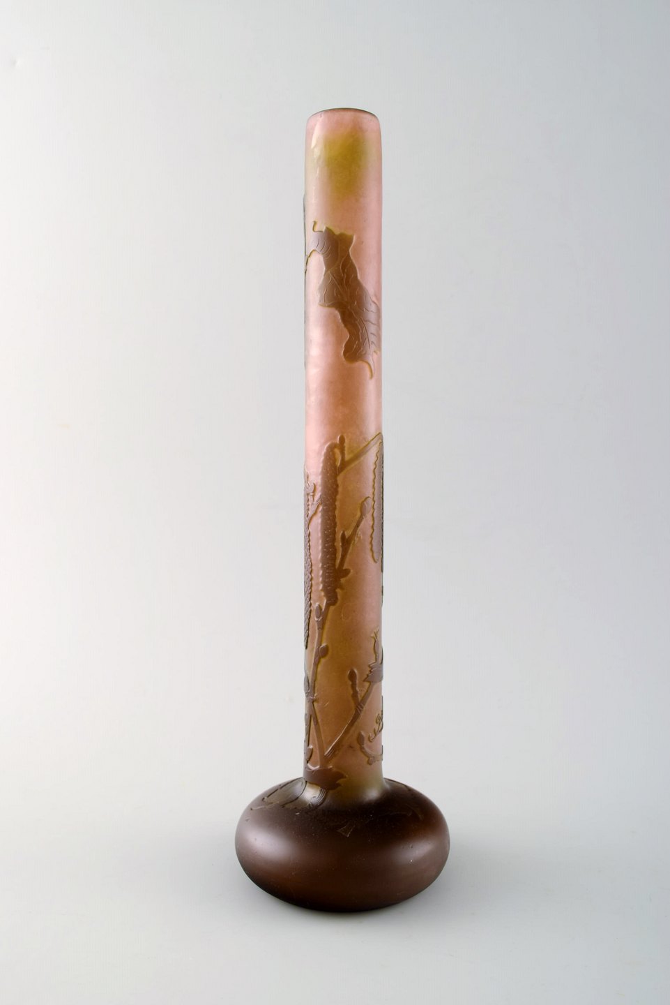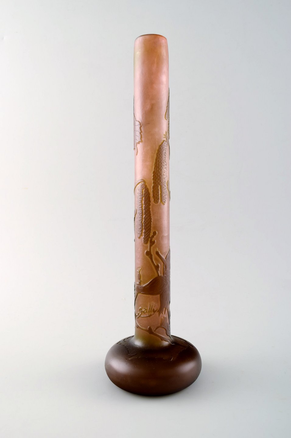 Emile Gallé kunstglasvase, ca. 1910´erne. Dekoreret med blomster. Mċler : 28,5 cm. x 9 cm. Signeret. I perfekt stand.