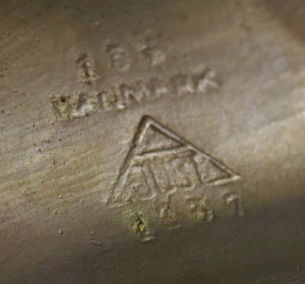 Just Andersen art deco par "disko" metal lysestager, nummer 1237. Stemplet. Fremstår i flot stand. Måler 23 x 30 cm.