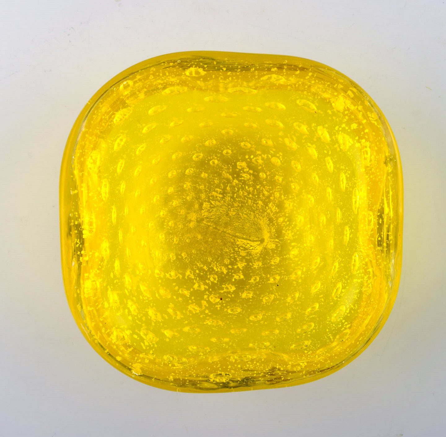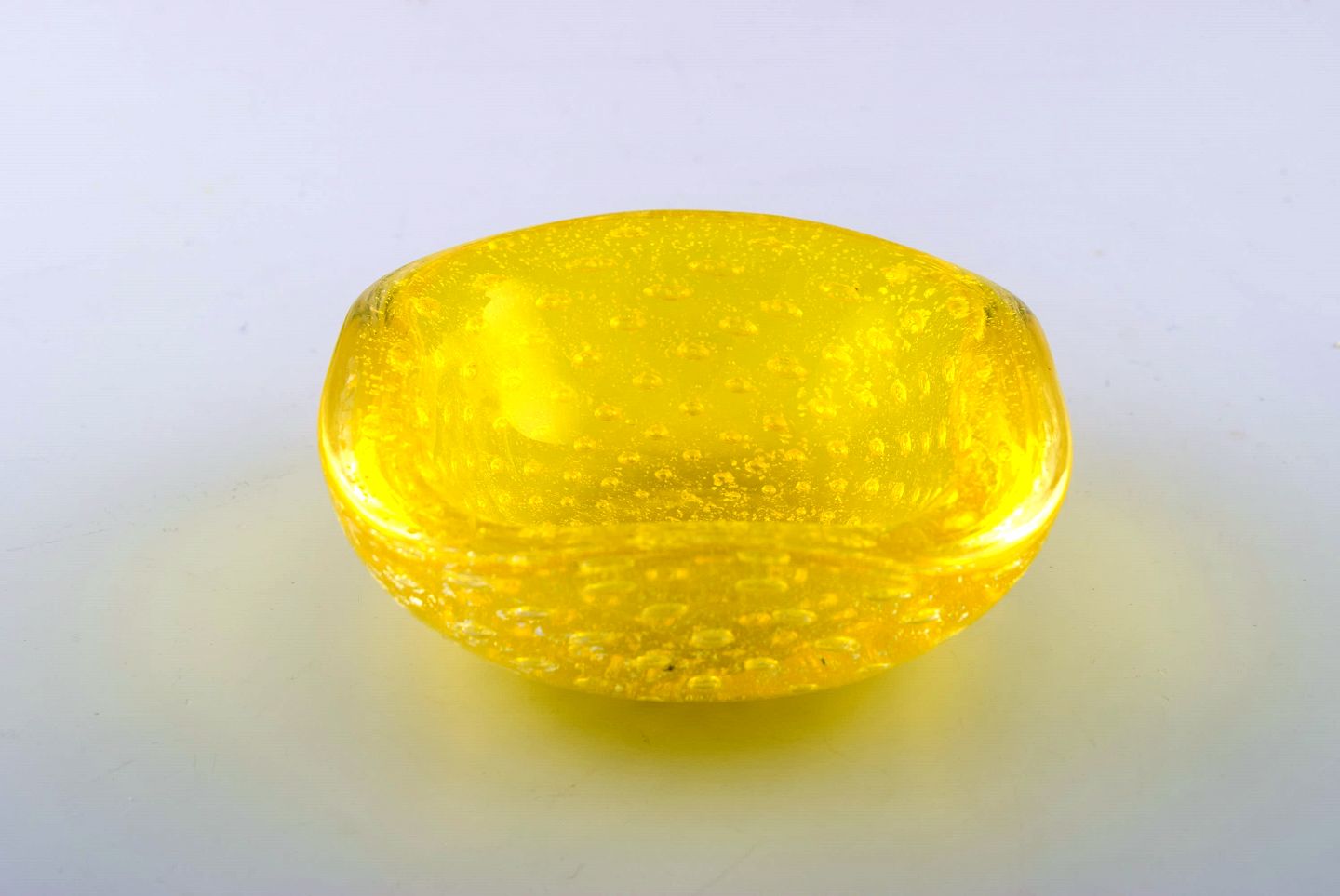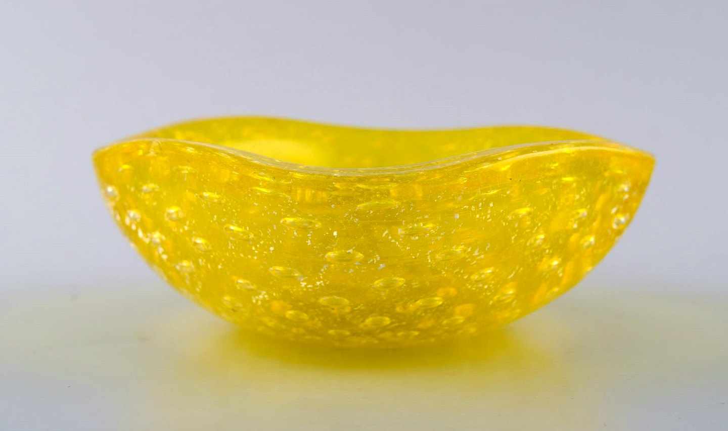 Murano kunstglas skål i markant gul. Italien, 1960/70´erne. I perfekt stand. Måler 11 cm. x 5 cm. Ustemplet.