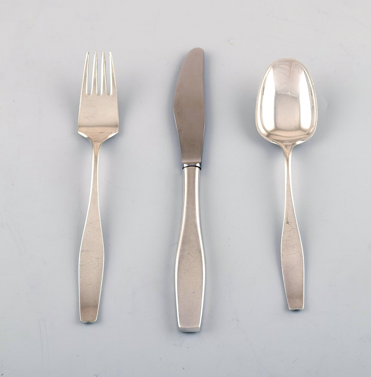 Hans Hansen "Charlotte" sølvbestik i sterlingsølv. Komplet service til otte personer. I alt 24 dele. Kniv måler : 19 cm. Perfekt stand. Stemplet.