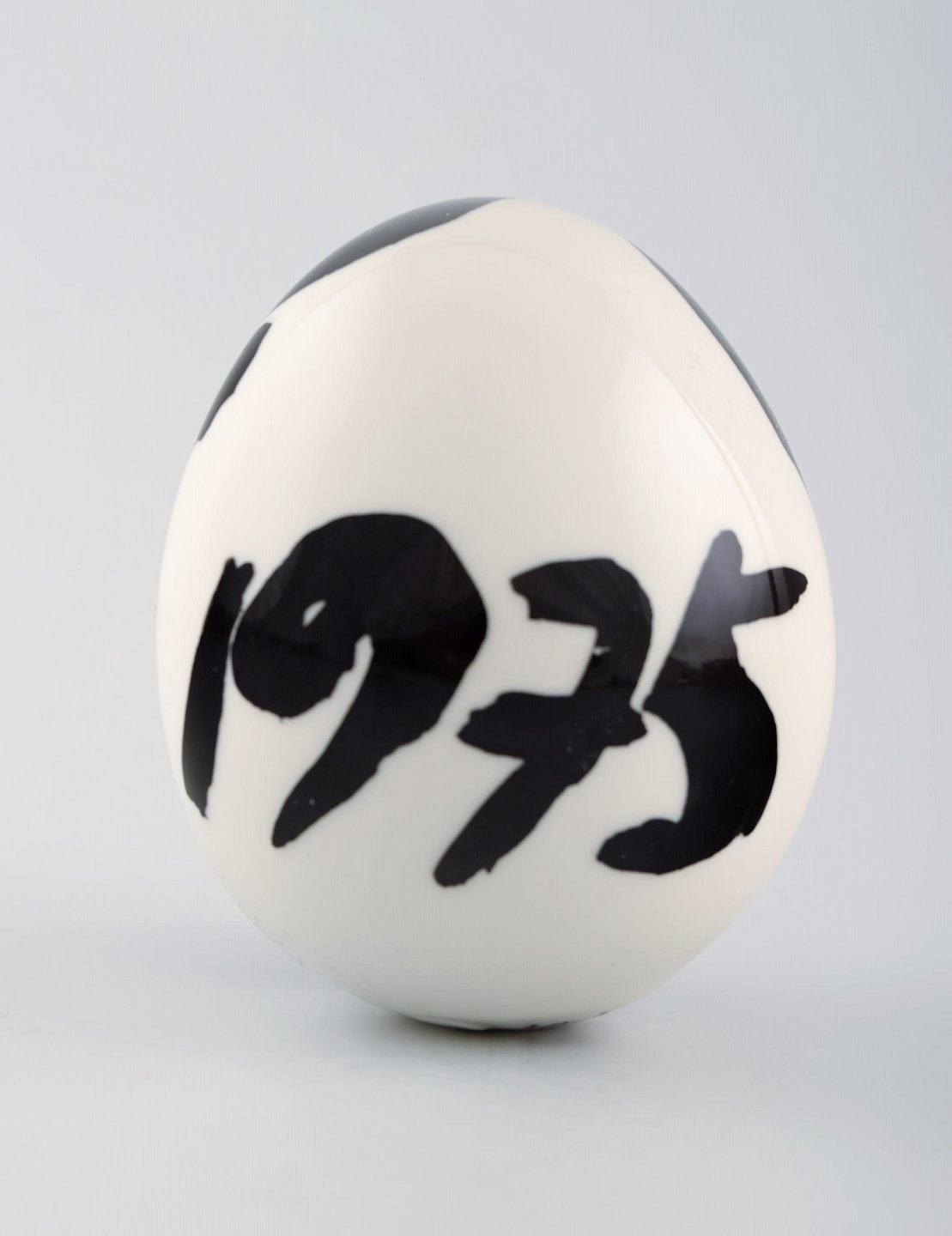 Årsæg 1975, Royal Copenhagen RC Årsæg 1975, Kunstner: Mogens Andersen. I produktion fra 1975 indtil 1980. Højde 10 cm. Diameter 7,5 cm. 1. sortering. I perfekt stand. Stemplet.