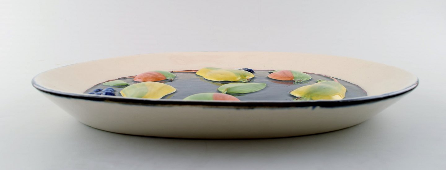 TIMO SARVIMÄKI for Designhuset. Stort fad med frugter. Måler : 33 cm. x 29,5 cm. x 4 cm. dybt. Signeret. I perfekt stand.
