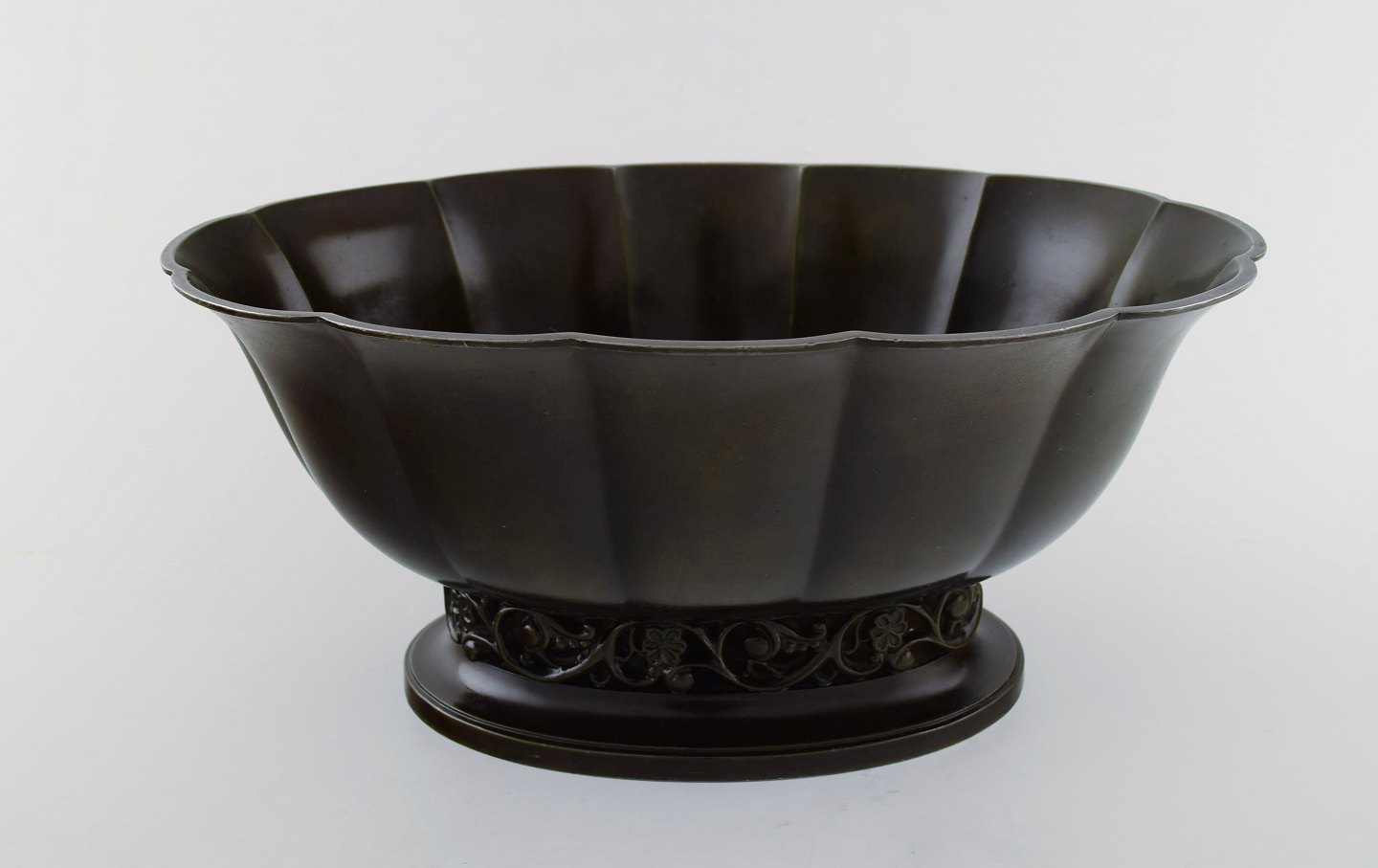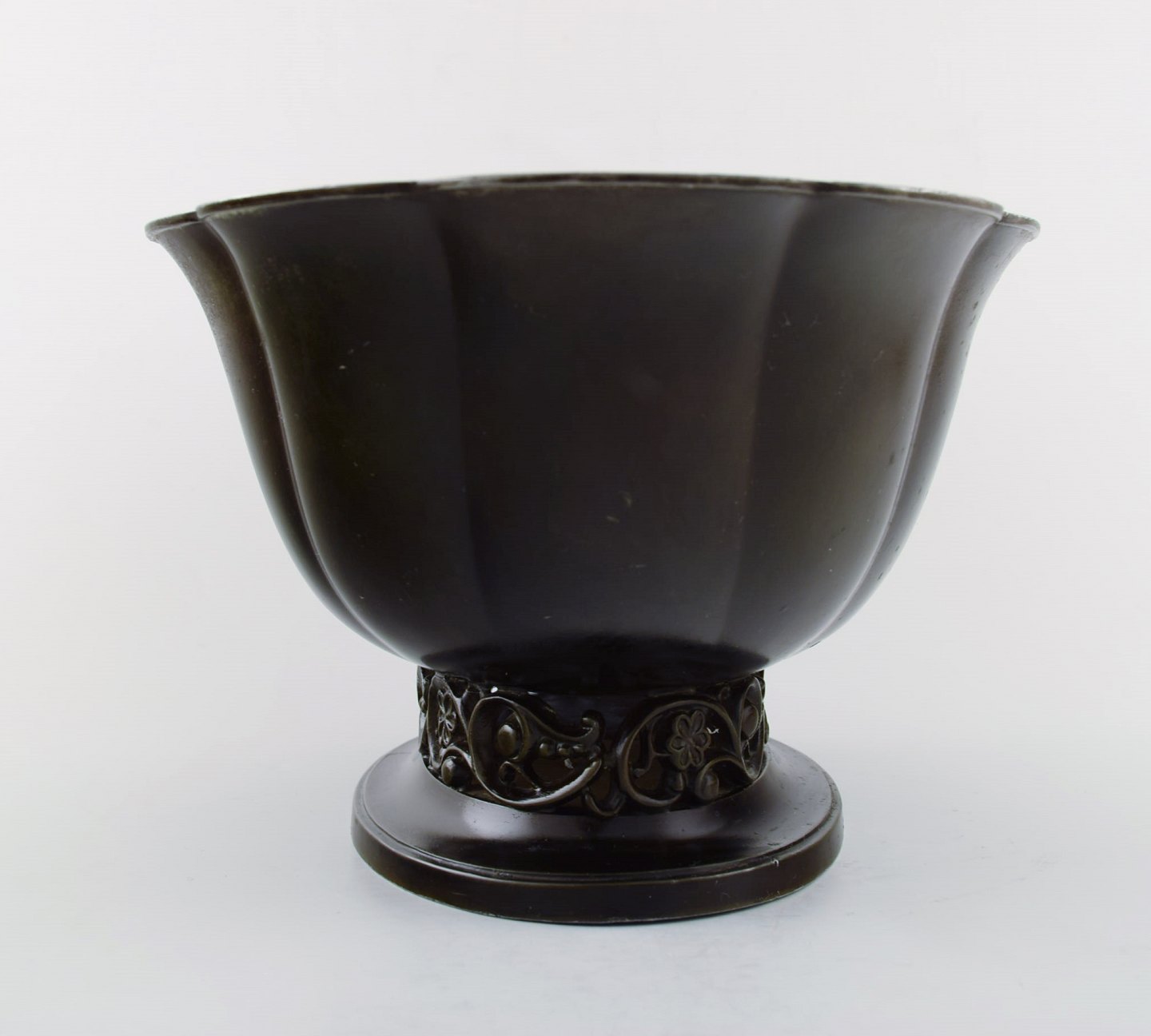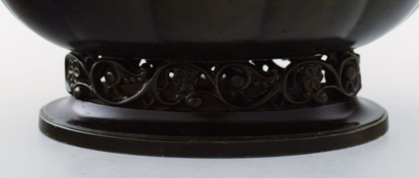 Just Andersen art deco diskometal jardiniere/opsats, nummer 164. Stemplet. I flot stand. Måler 32 x 15 cm.