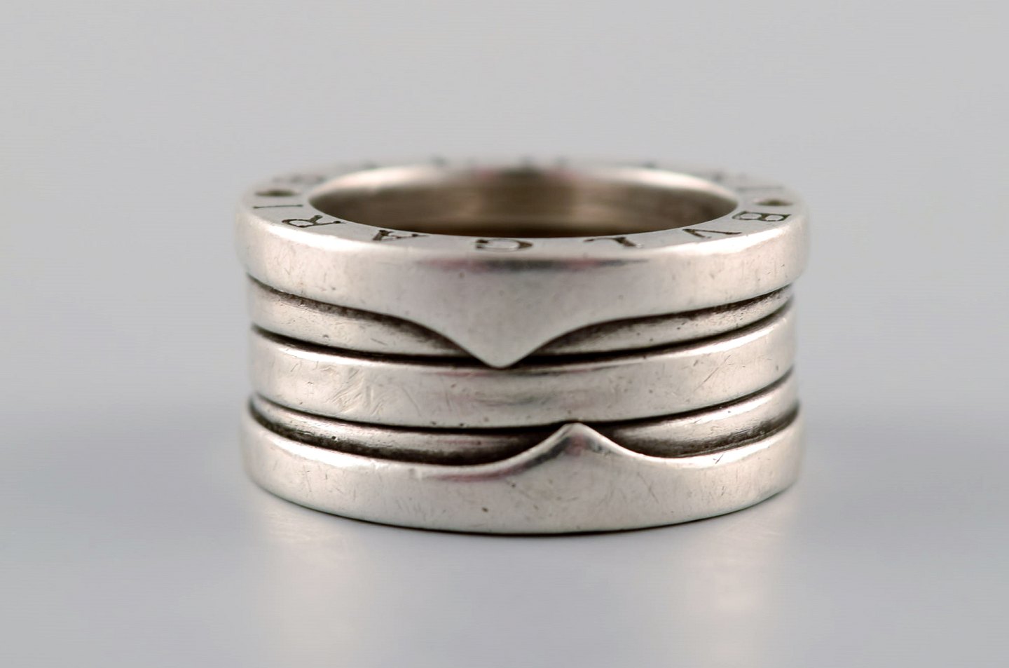 Bulgari ring af sterlingsølv. I perfekt stand. Stemplet. Ringstørrelse 18 mm. Vores sølvsmed kan ændre til alle størrelser for kr. 300.-
