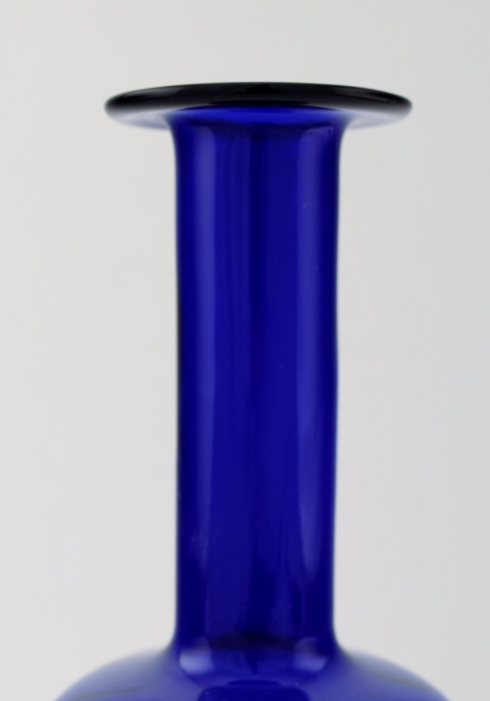 Holmegaard stor vase/flaske, Otto Brauer. Mørkeblåt kunstglas. Måler : 26 cm. x 9,5 cm. I perfekt stand.