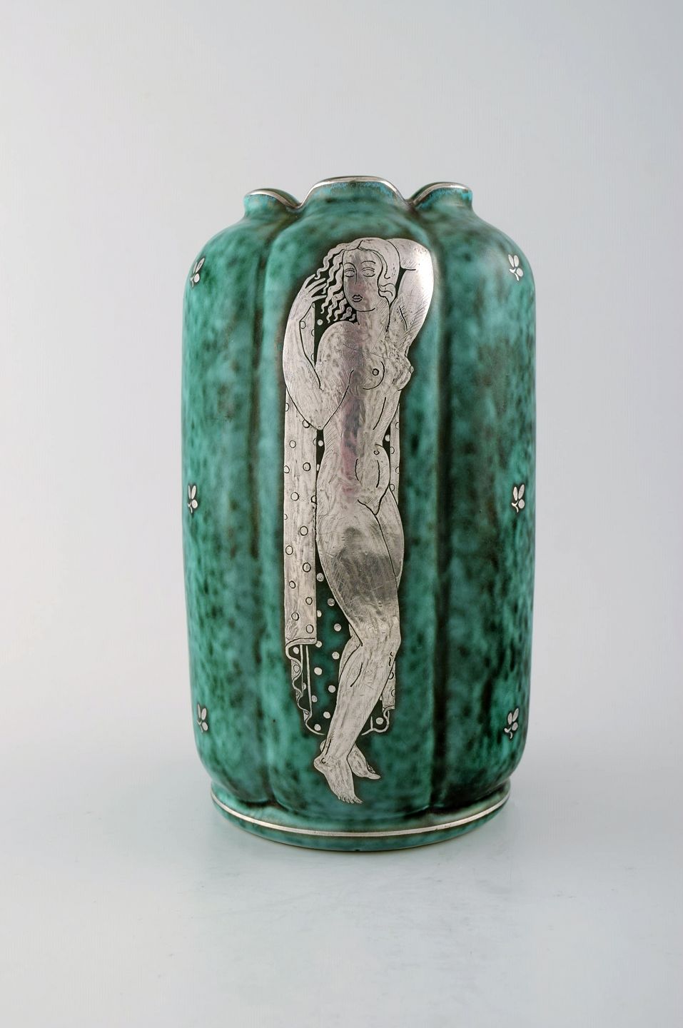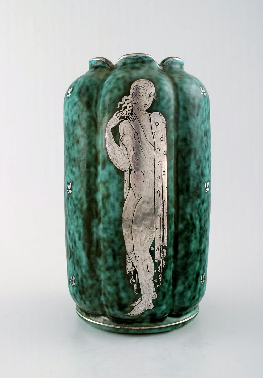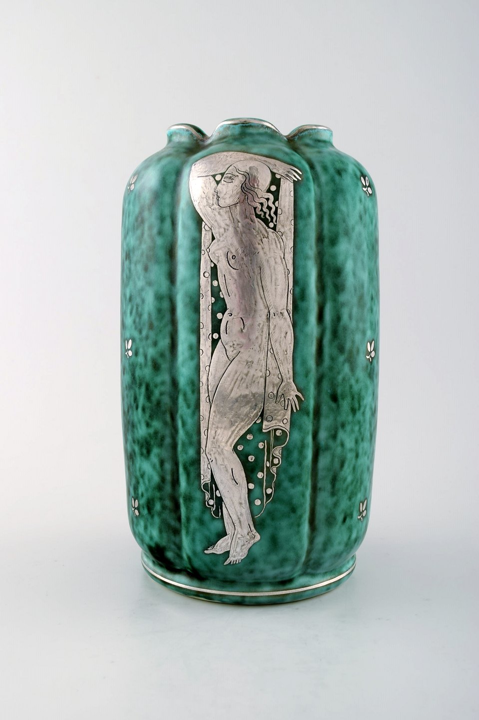 Wilhelm Kåge, Gustavsberg, Argenta vase i keramik, Art deco. Nøgne kvinder. Måler 22 cm. x 12 cm. Modelnummer 869. Stemplet Gustavsberg, Argenta. I perfekt stand.