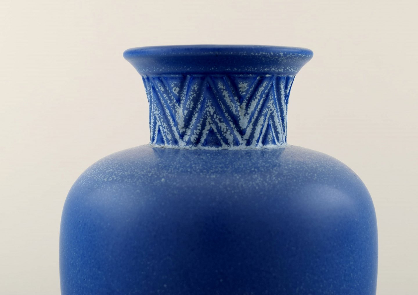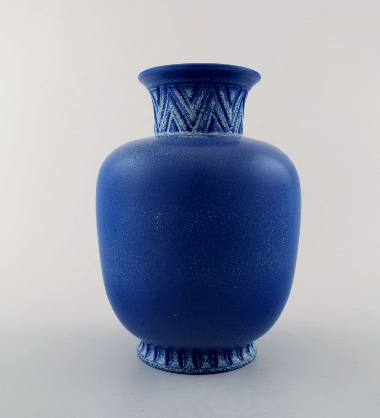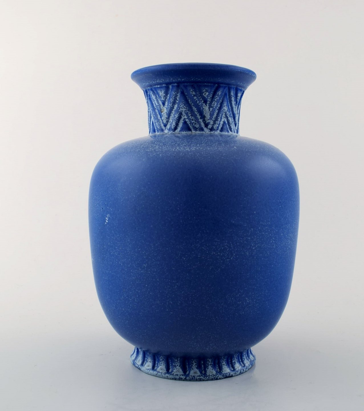 Rørstrand/Rörstrand stentøjsvase af Gunnar Nylund. 19,5 cm. høj. Diameter 13,5 cm. I perfekt stand. Flot glasur i blå nuancer. 1. sortering. Stemplet.