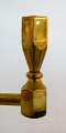 Gusum metal, lysekrone i messing til seks lys. Svensk design. Måler : 37,5 cm. x 24 cm. Højde i alt 116 cm. I perfekt stand.