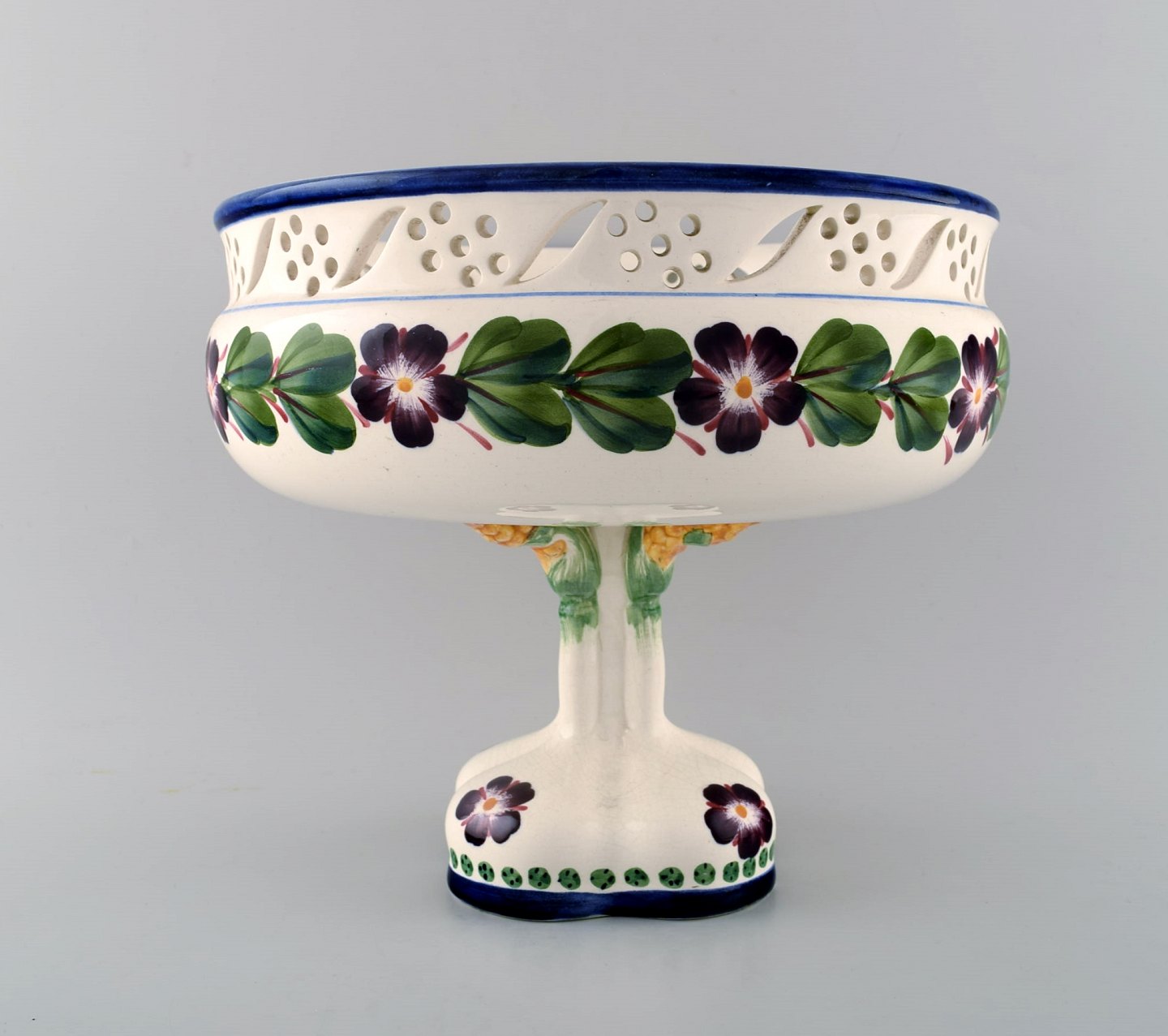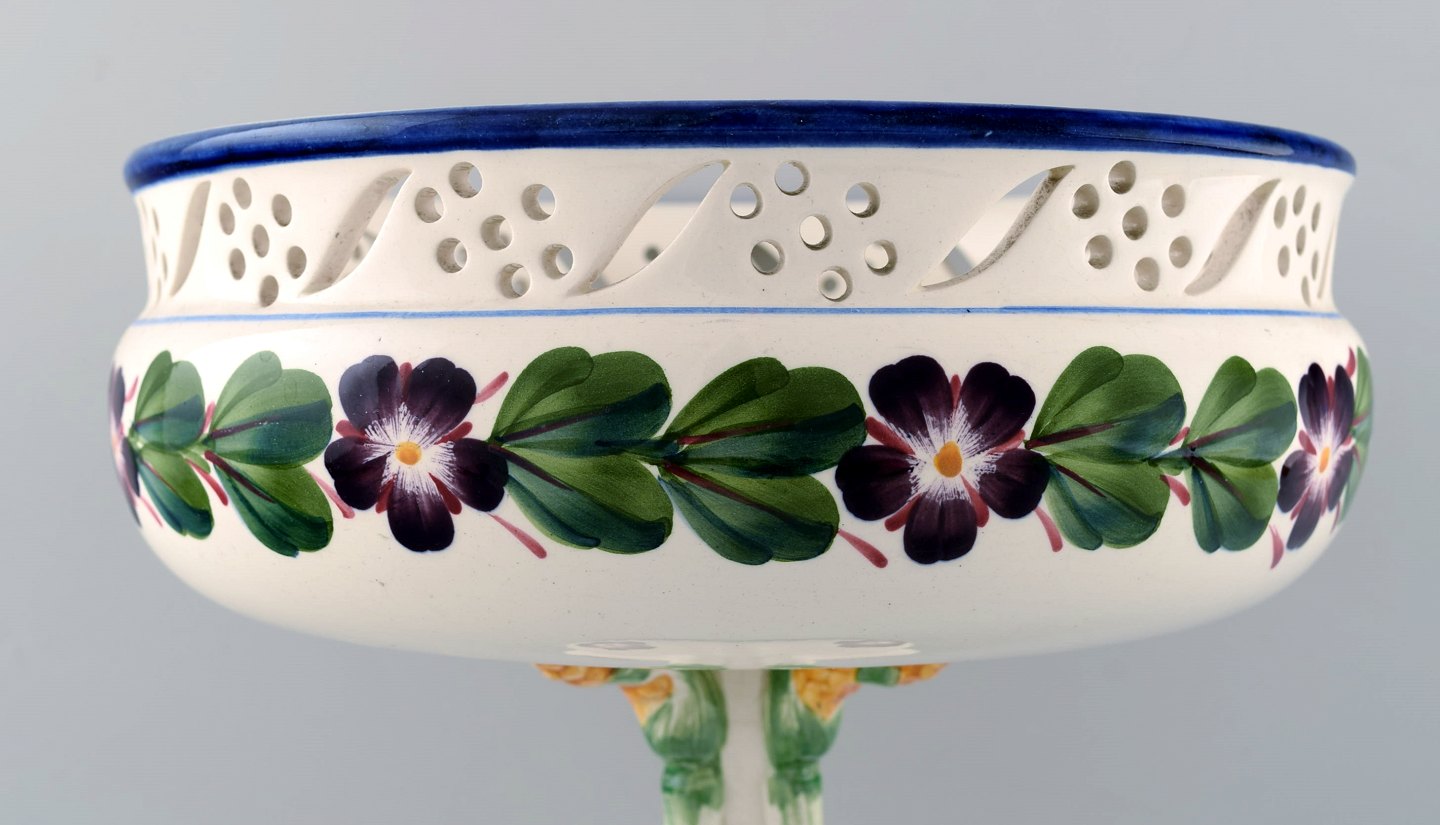 Aluminia fajance stor gennembrudt opsats, håndmalet med blomster motiver. Måler 27 cm. x 23 cm. I god stand. Stemplet. Ca. 1915.