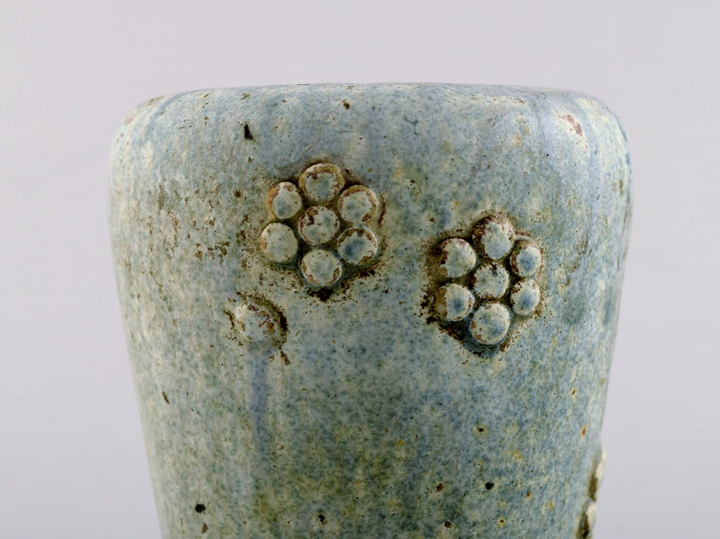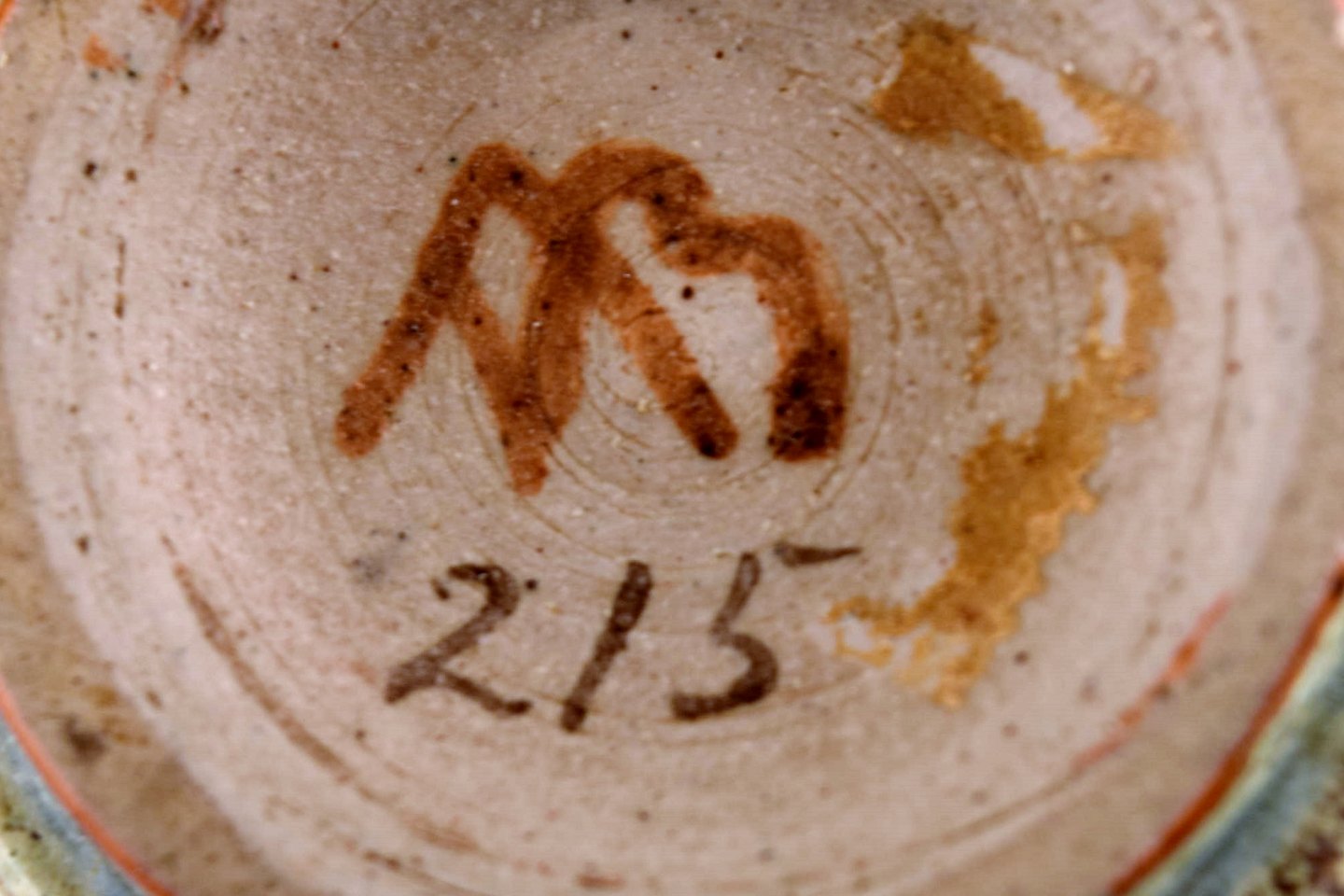 Arne Bang. Keramik vase. Stemplet AB 215. Flot glasur i blå nuancer. I perfekt stand. Måler: 13.5 cm. x 10 cm.