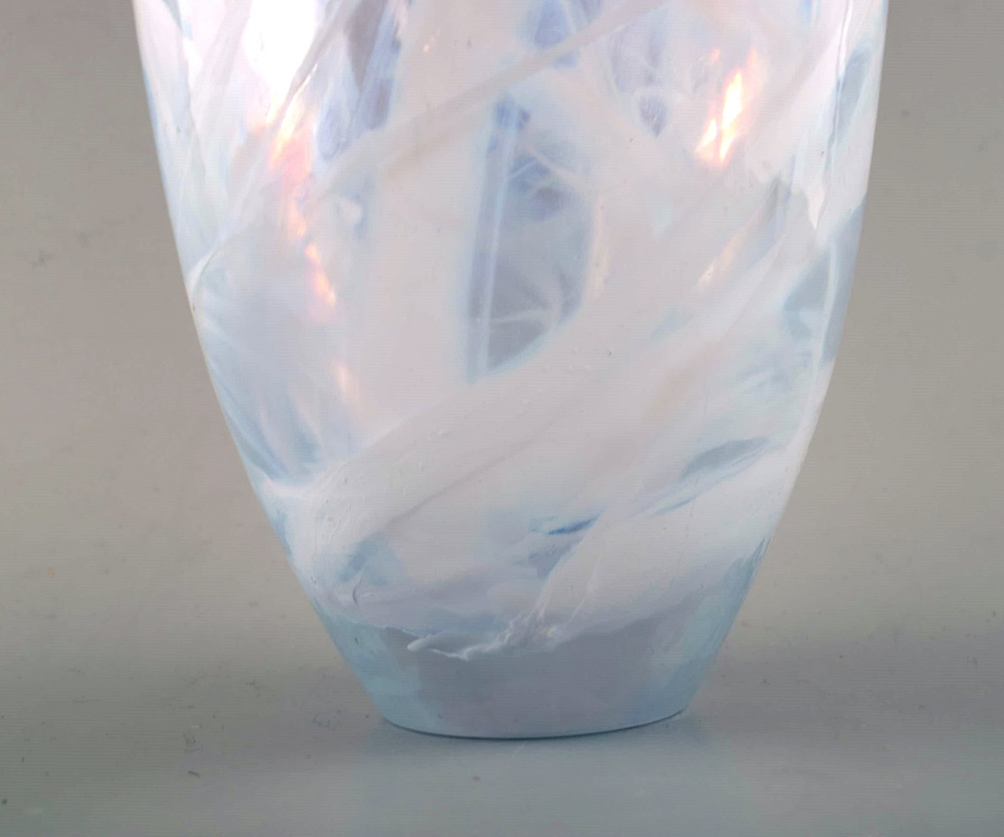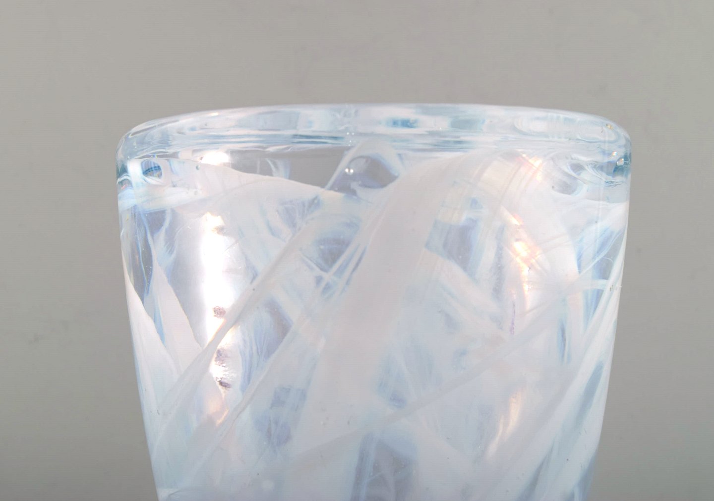 Svensk kunstglasvase i klart glas. Formgivet i 1970/80´erne. Højde 19 cm. Diameter 15 cm. I perfekt stand. Usigneret.