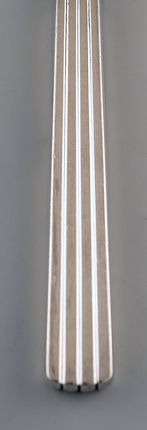 Det elegante bestik Bernadotte med det kanellerede skaft er tegnet af den svenske designer og kongesøn Sigvard Bernadotte for Georg Jensen Sølvsmedie i 1939.