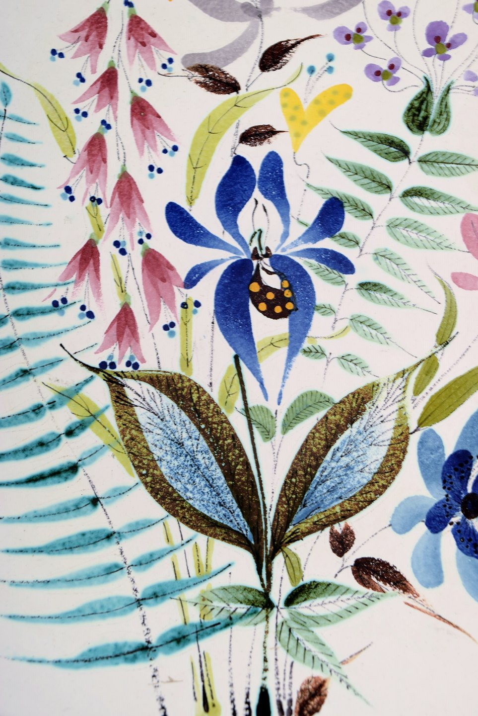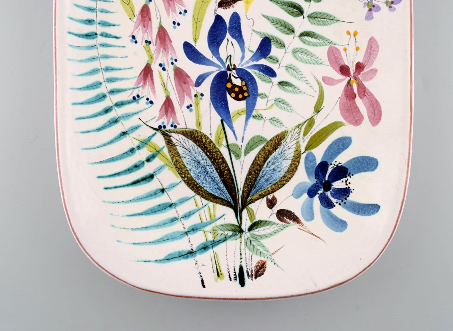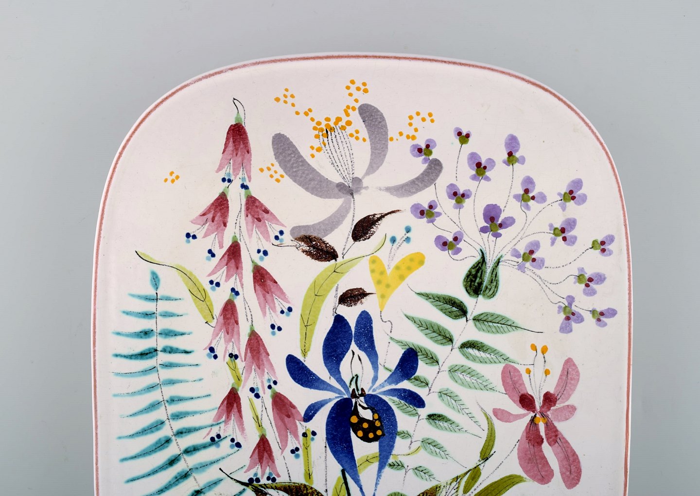Fad dekoreret med blomster, Stig Lindberg, Gustavsberg studio. Fajance. 1940´erne. Måler : 33 cm. x 25 cm. Dybde : 4 cm. Signeret med "studiohand". I perfekt stand.
