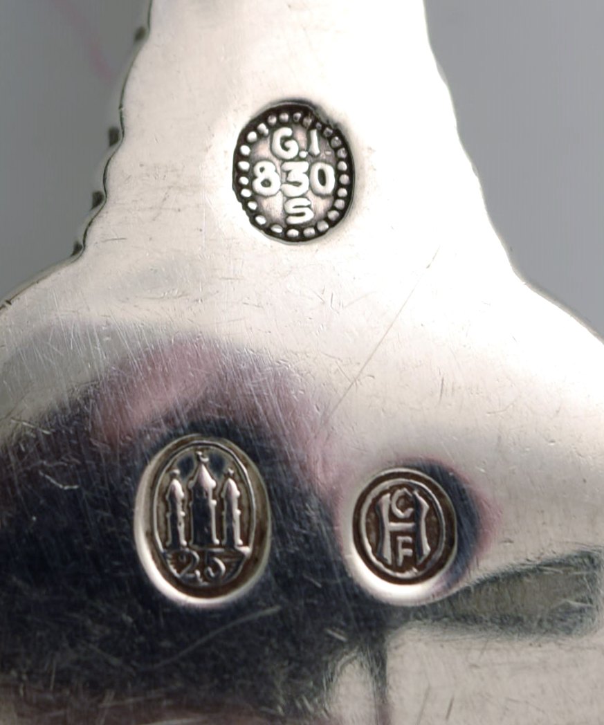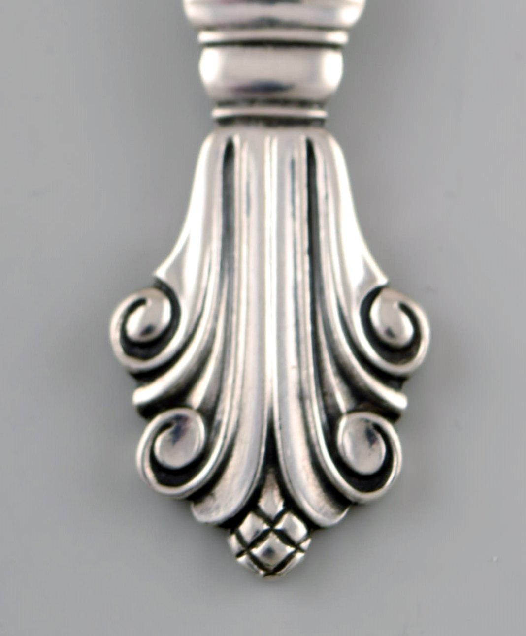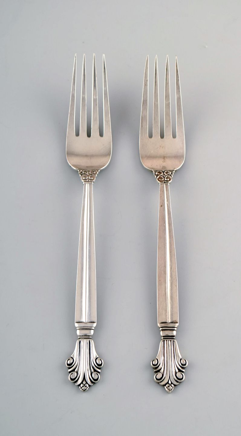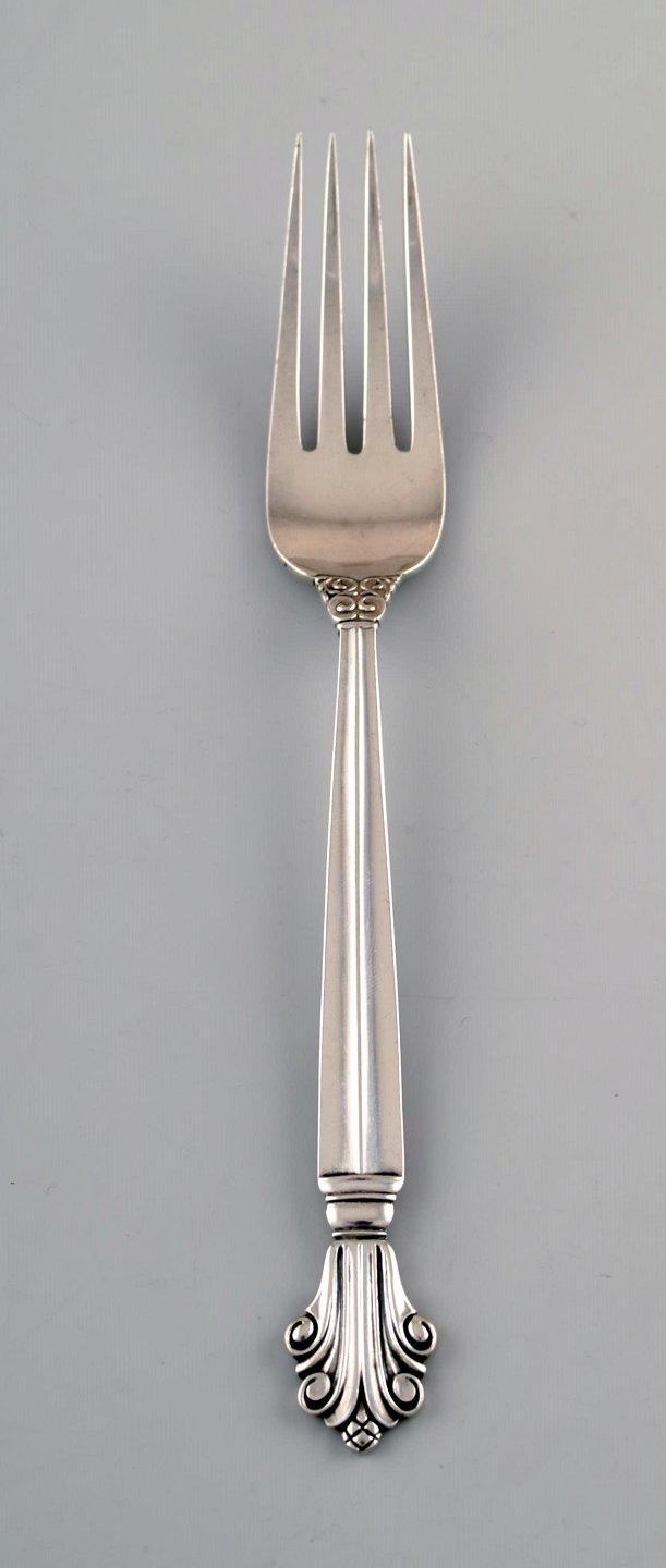 Georg Jensen Dronning Sterlingsølv middagsgaffel. 1 STK. på lager. Måler 20 cm. Tidligt Stempel. I flot stand.