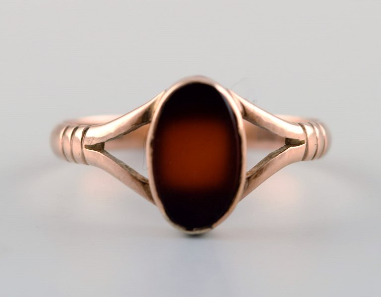 Vintage ring af 14 kt. guld, front med facetsleben sten.