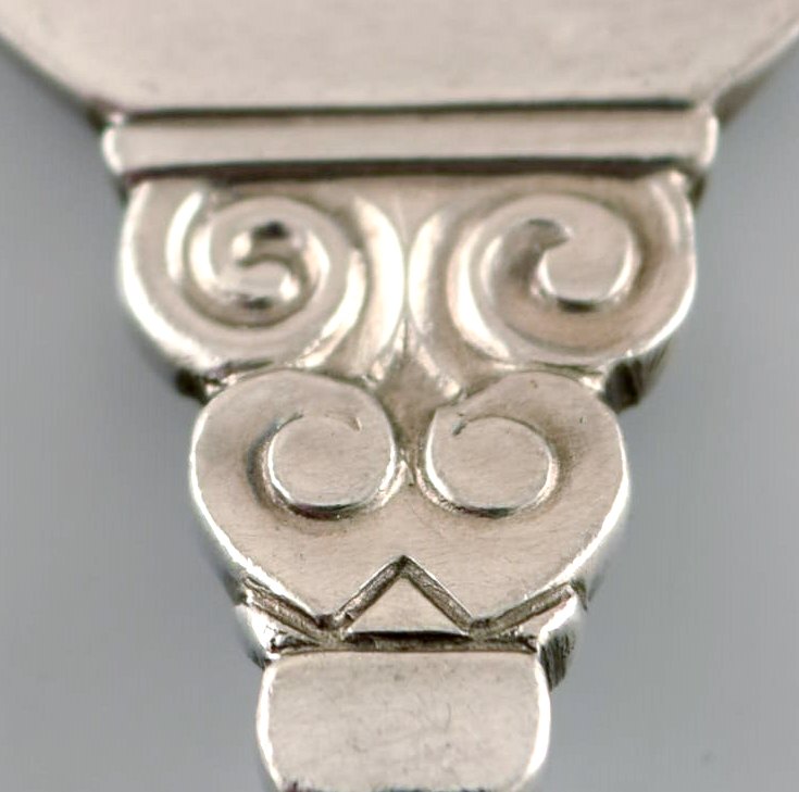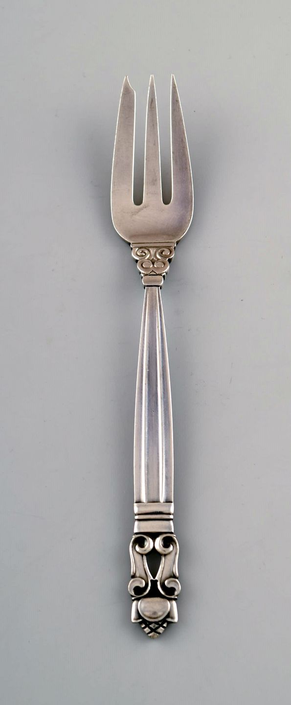 Georg Jensen "KONGE" kagegaffel i sterlingsølv. 5 stk. på lager. Designer: Johan Rohde. Længde: : 14 cm. Stemplet. I perfekt stand.