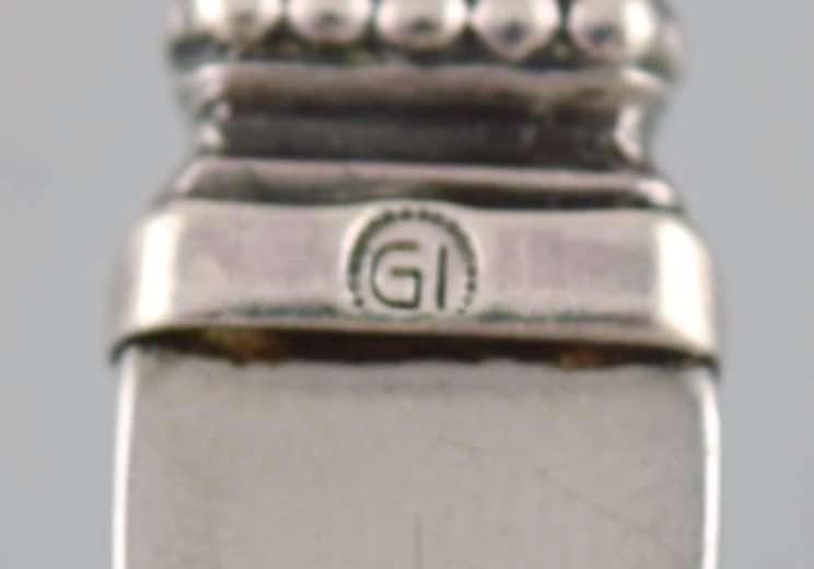Georg Jensen "KONGE" sovseske i Sterlingsølv og stål. 2 stk. på lager. Designer: Johan Rohde. Længde: : 19,5 cm. Tidligt Stemplet. I perfekt stand.