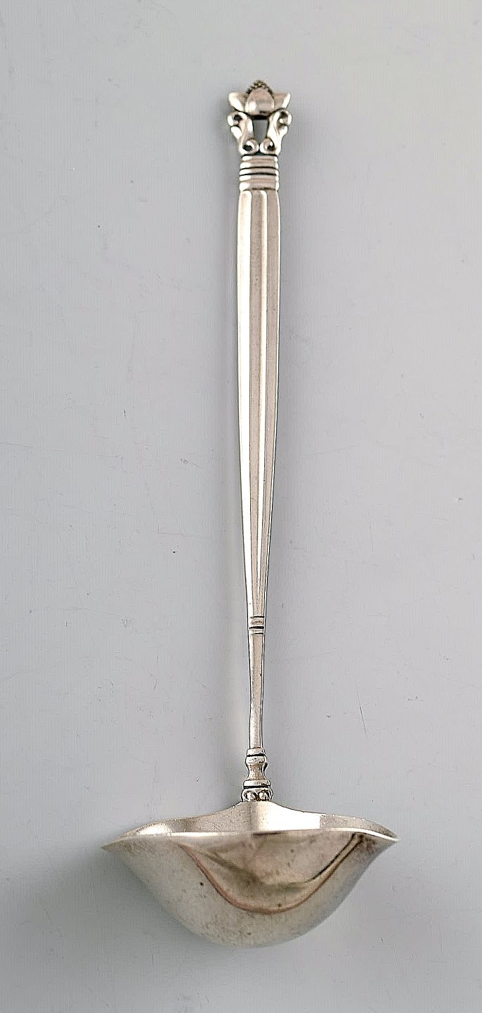 Georg Jensen "KONGE" lille sovseske i Sterlingsølv. 1 stk. på lager. Designer: Johan Rohde. Længde: : 15 cm. Stemplet. 1930´erne. I perfekt stand.